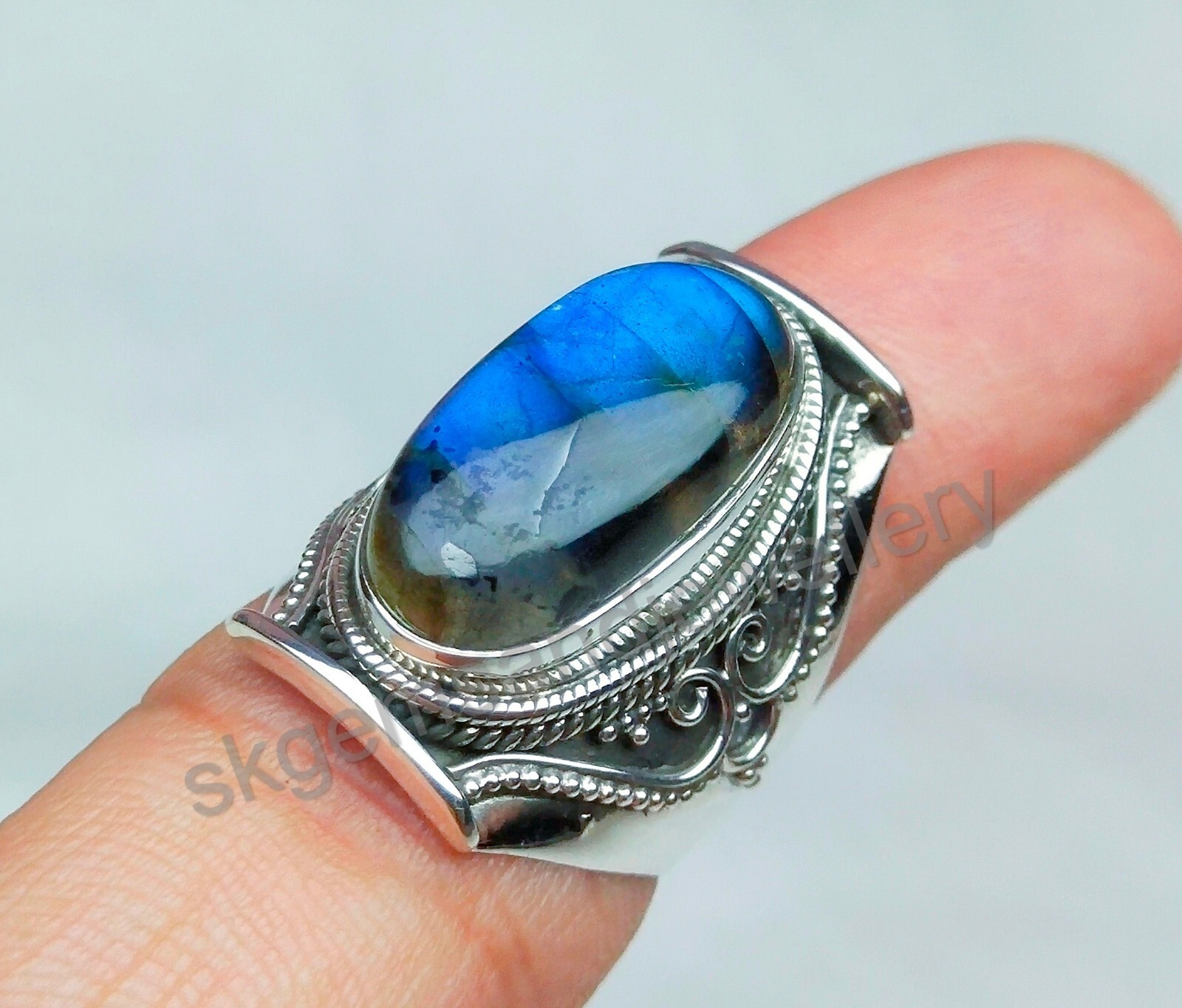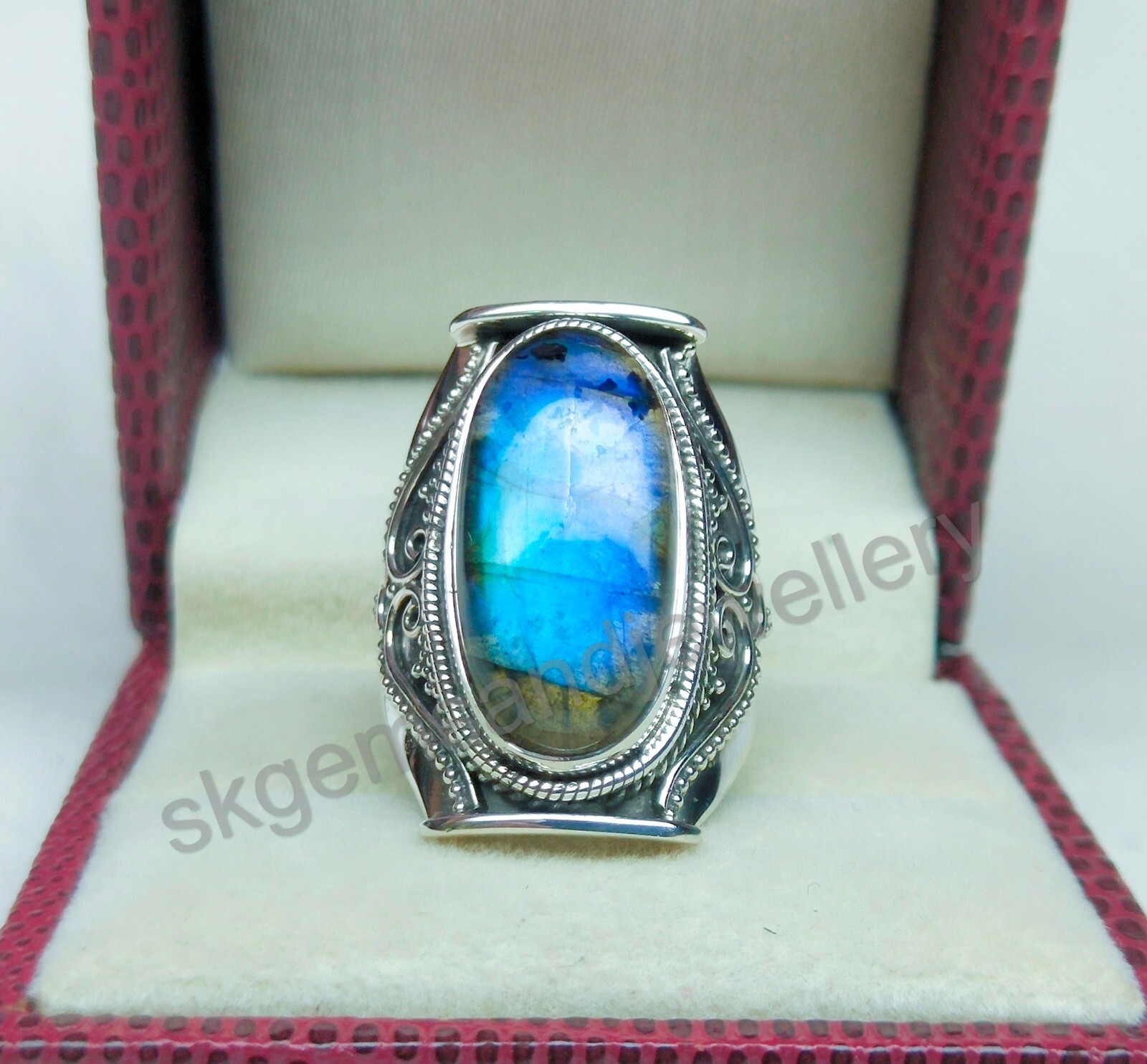 Natural Labradorite Ring 925 Sterling Silver Ring Boho Women Ring Gift For Her