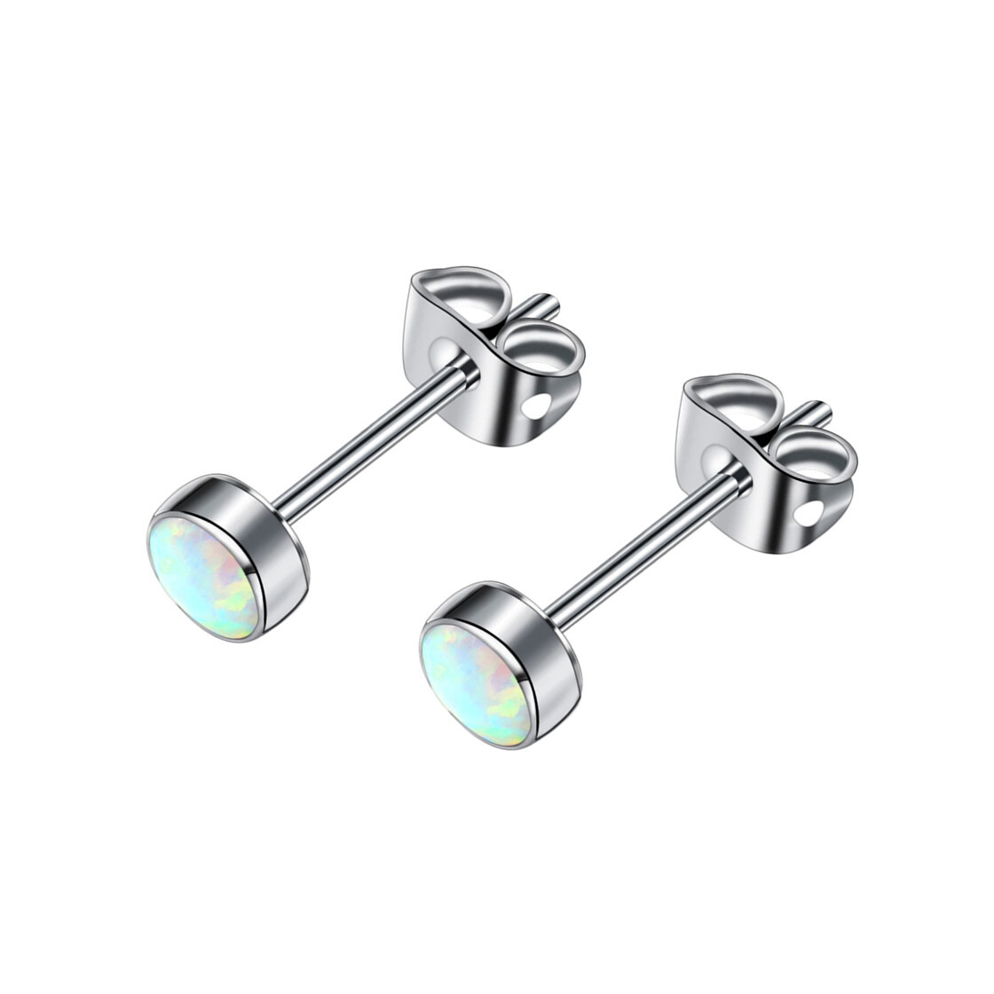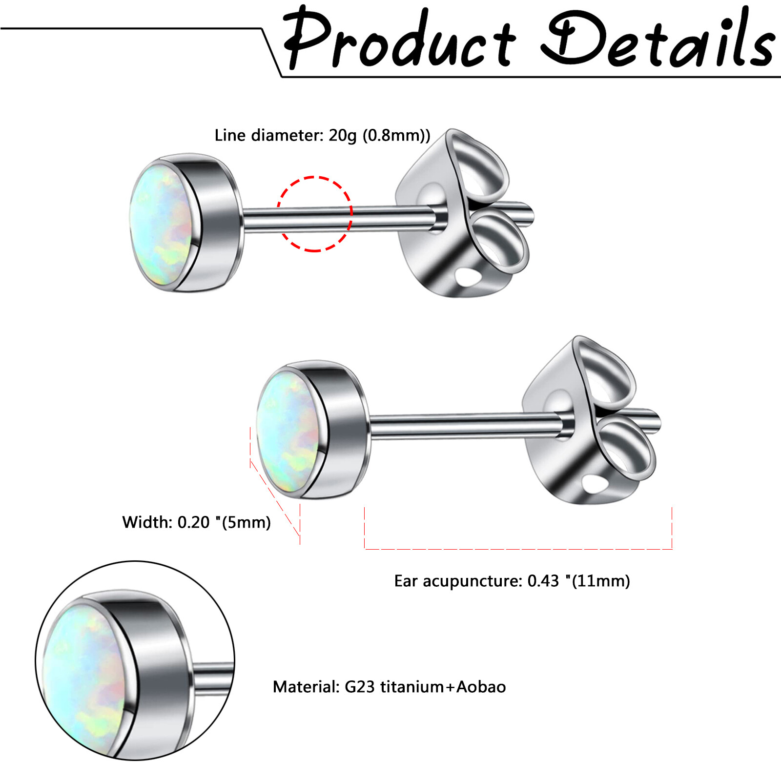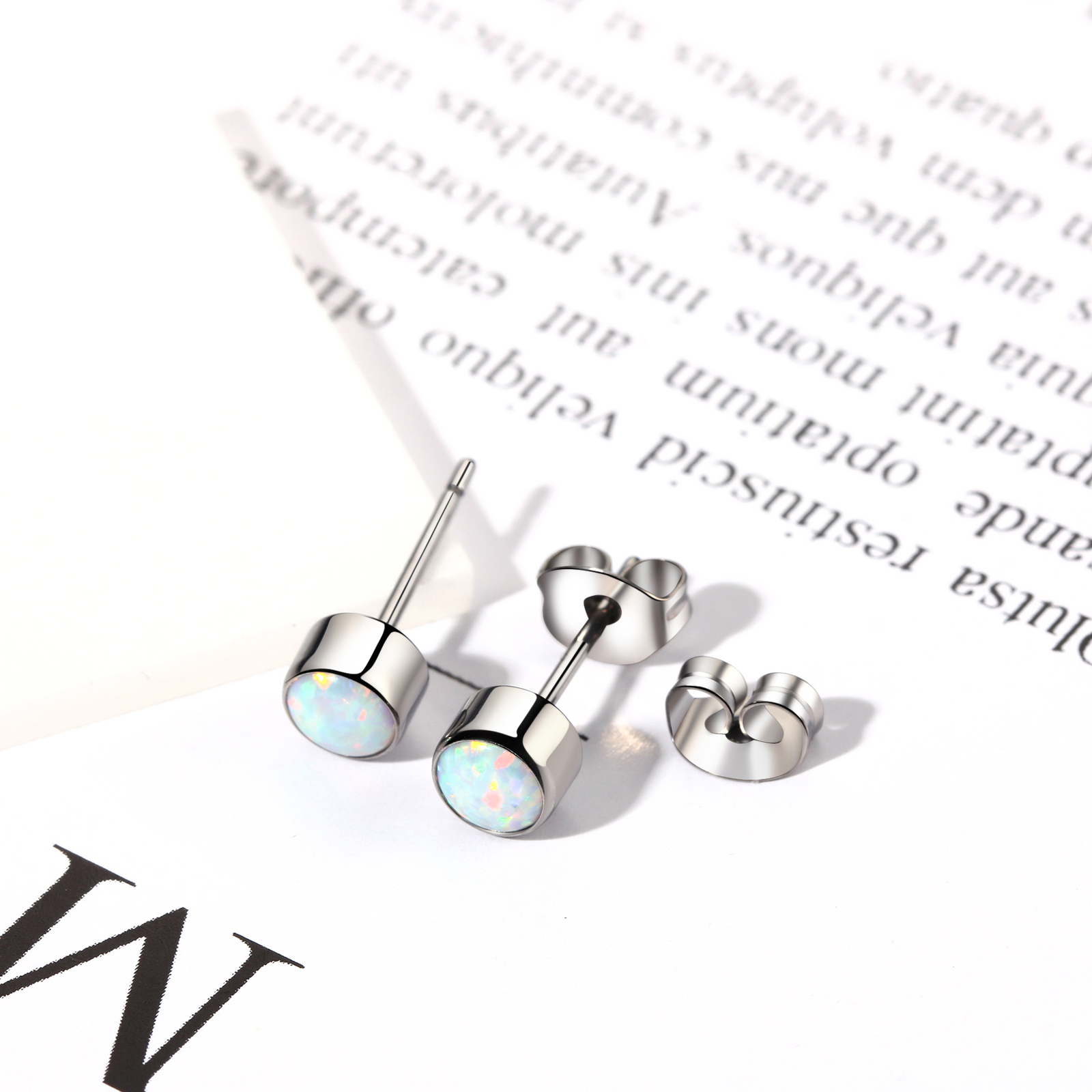 2pcs G23 Titanium Opal Stud Earrings Hypoallergenic for Sensitive with Gift Box