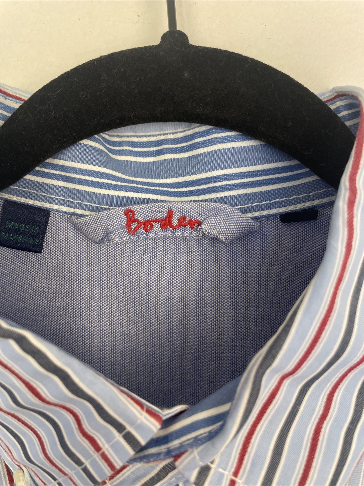 Boden Striped Button Up Men s Collared Shirt Long Sleeve SZ Large Red Gray Work