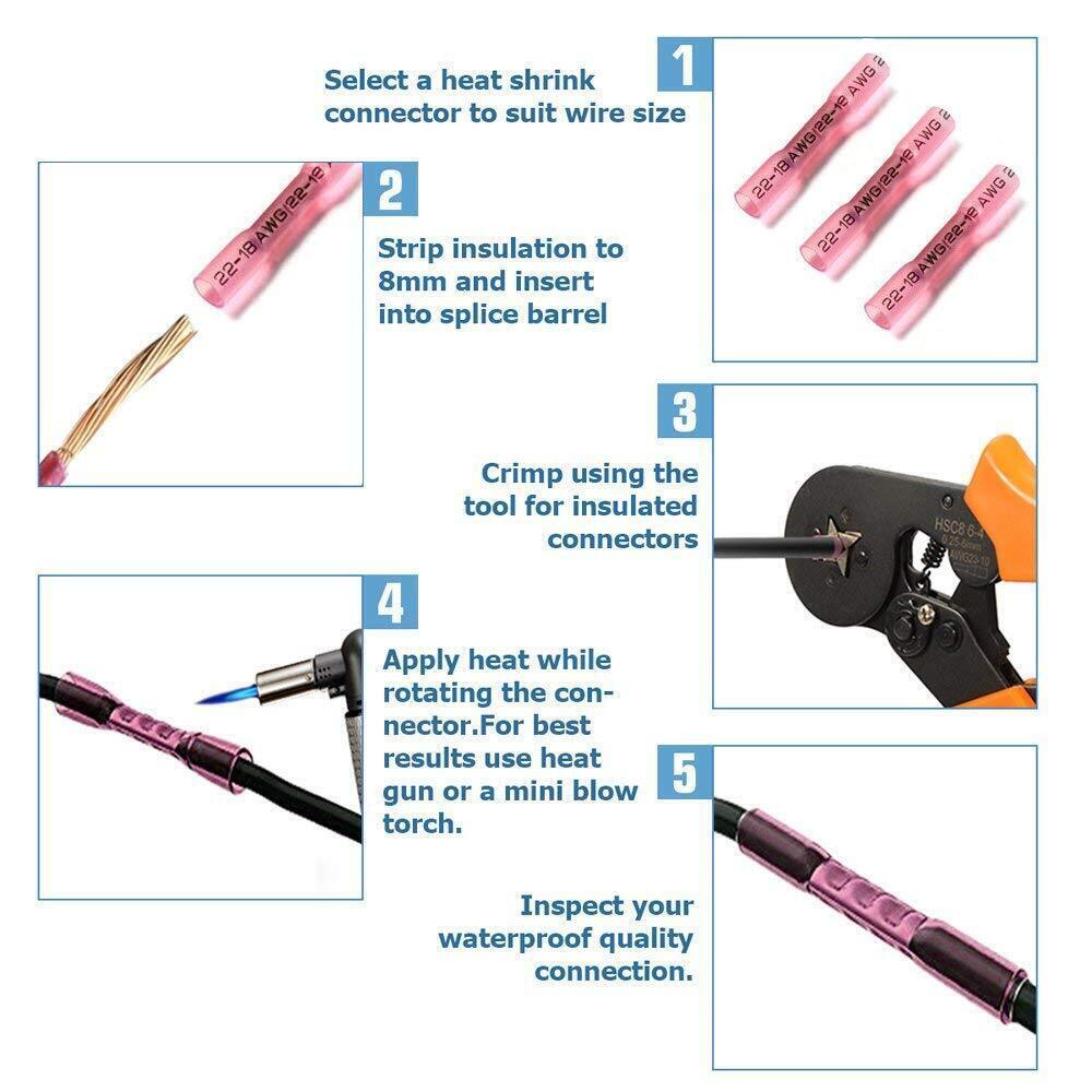 Red Heat Shrink Butt Wire Connectors Crimp Terminals AWG 22-16 Gauge1000-100PCS