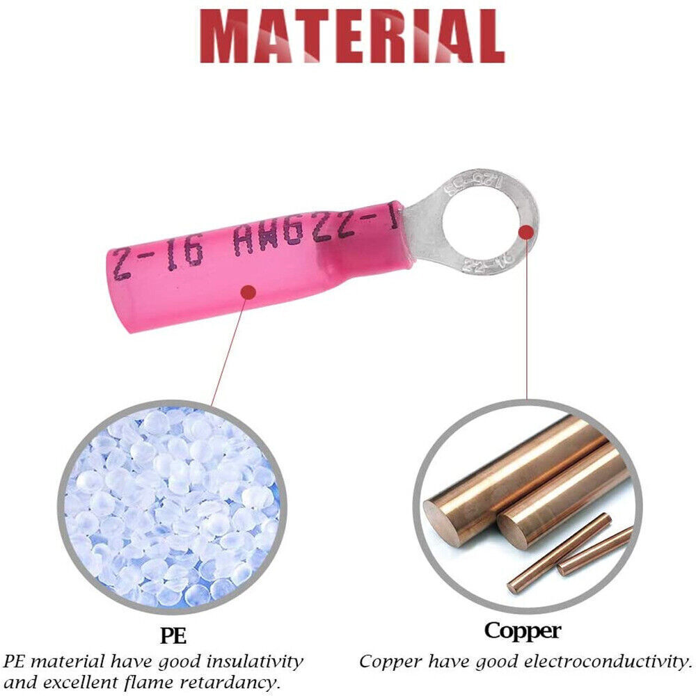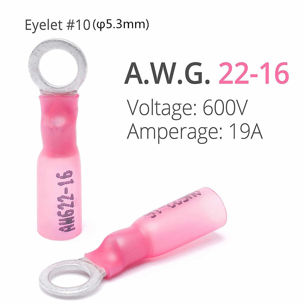 100PCS Heat Shrink Ring Terminals 10 Eyelet Wire Connectors Red 22-16 AWG US