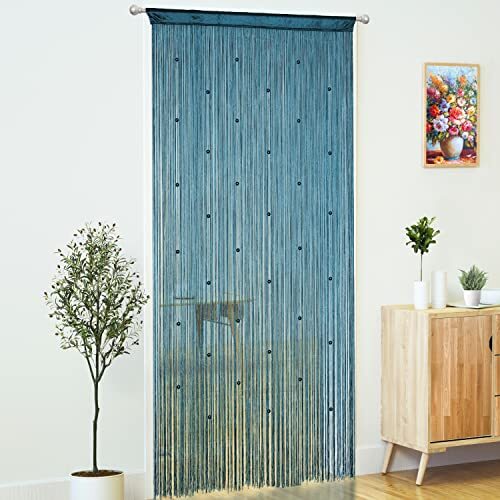 YaoYue Beaded Curtain Door String Curtains for Doorways 39 79 in 1 Teal Blue