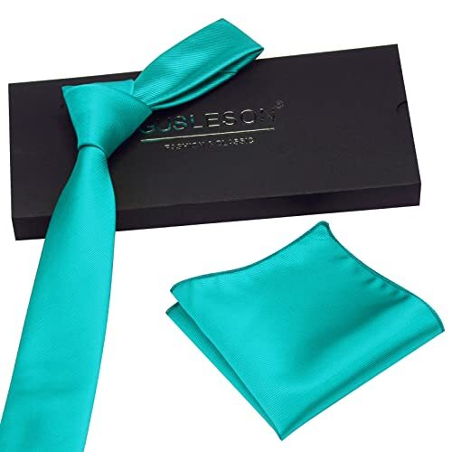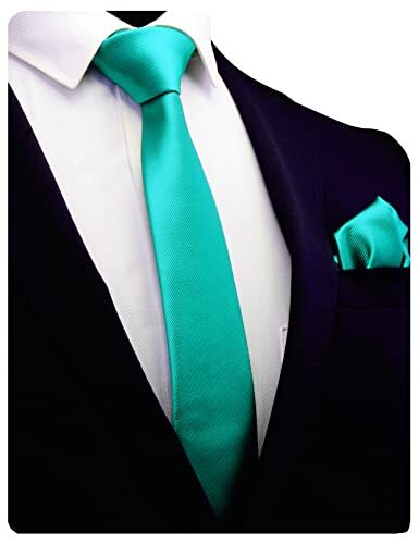 2.4 Slim Necktie and Handkerchief Set For Men Solid Skinny Tie Brooch Set Aqua