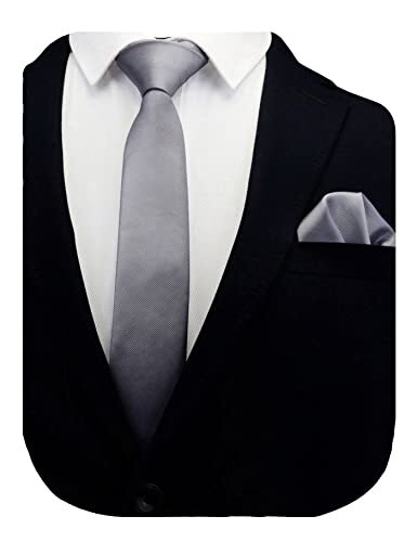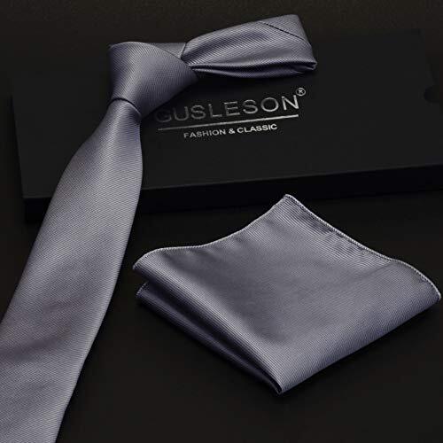 2.4 Slim Necktie and Handkerchief Set For Men Solid Skinny Tie Brooch Set Gray
