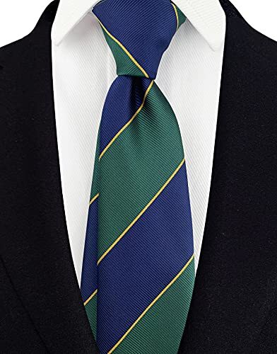 Men's Modern Stripe Ties Woven Pattern Business One Size Navy Green Yellow