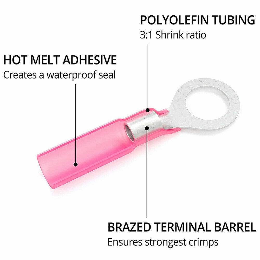 Red Heat Shrink Ring Hoop Terminals Electrical Wire Connector Eyelet 22-16AWG
