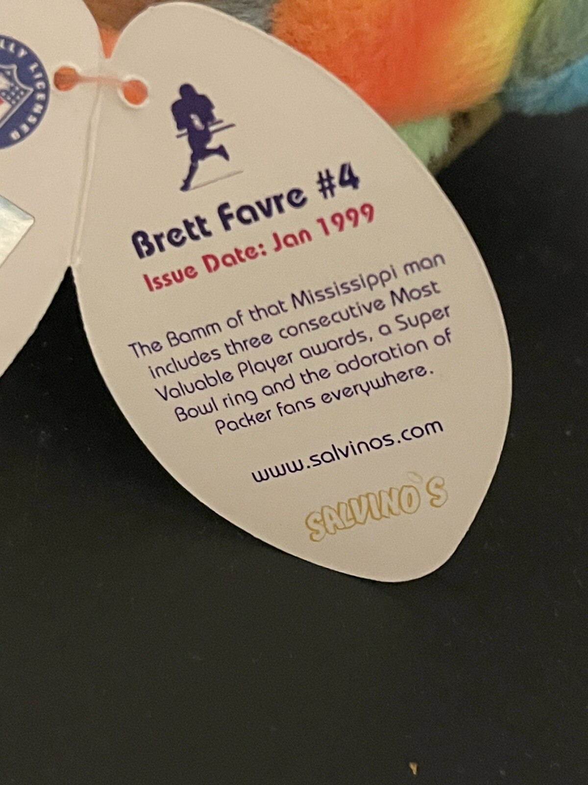 BRETT FAVRE Salvino's Bammers Beanie Baby football Green Bay Packers 4NEW W/TAG