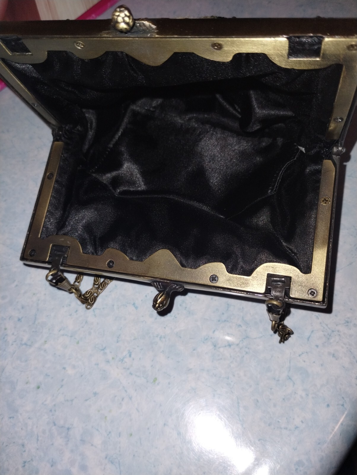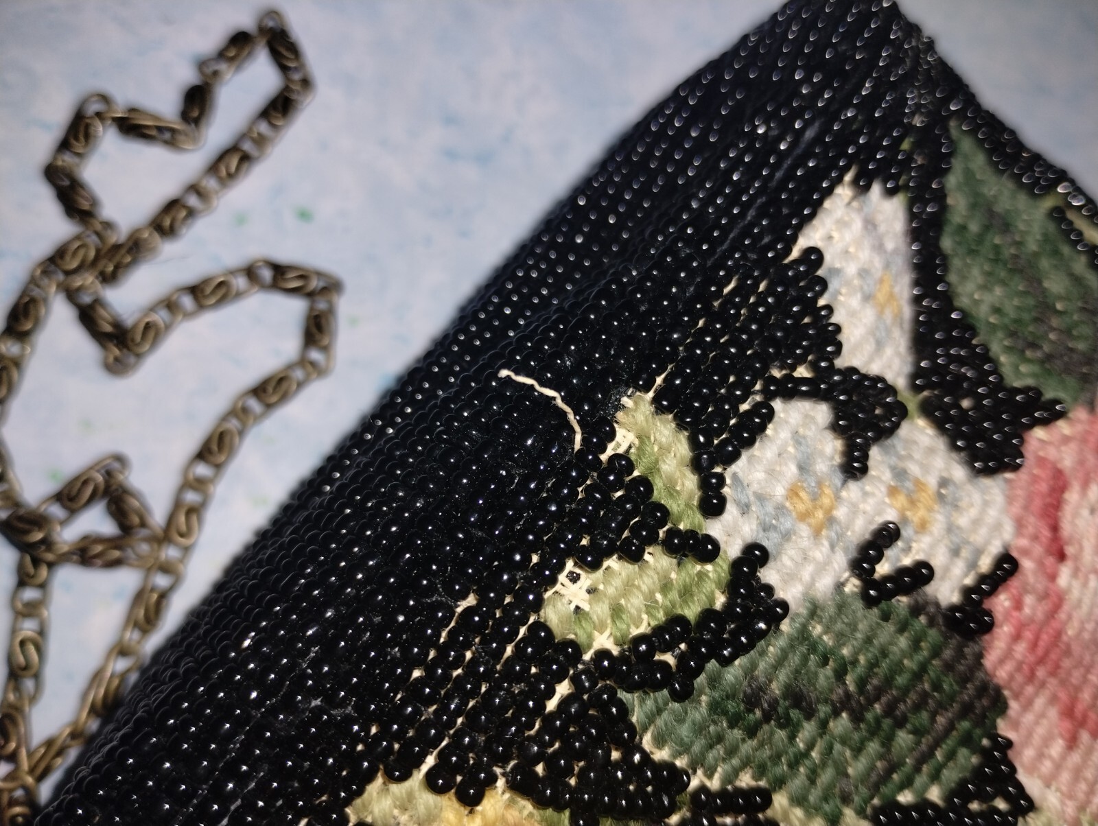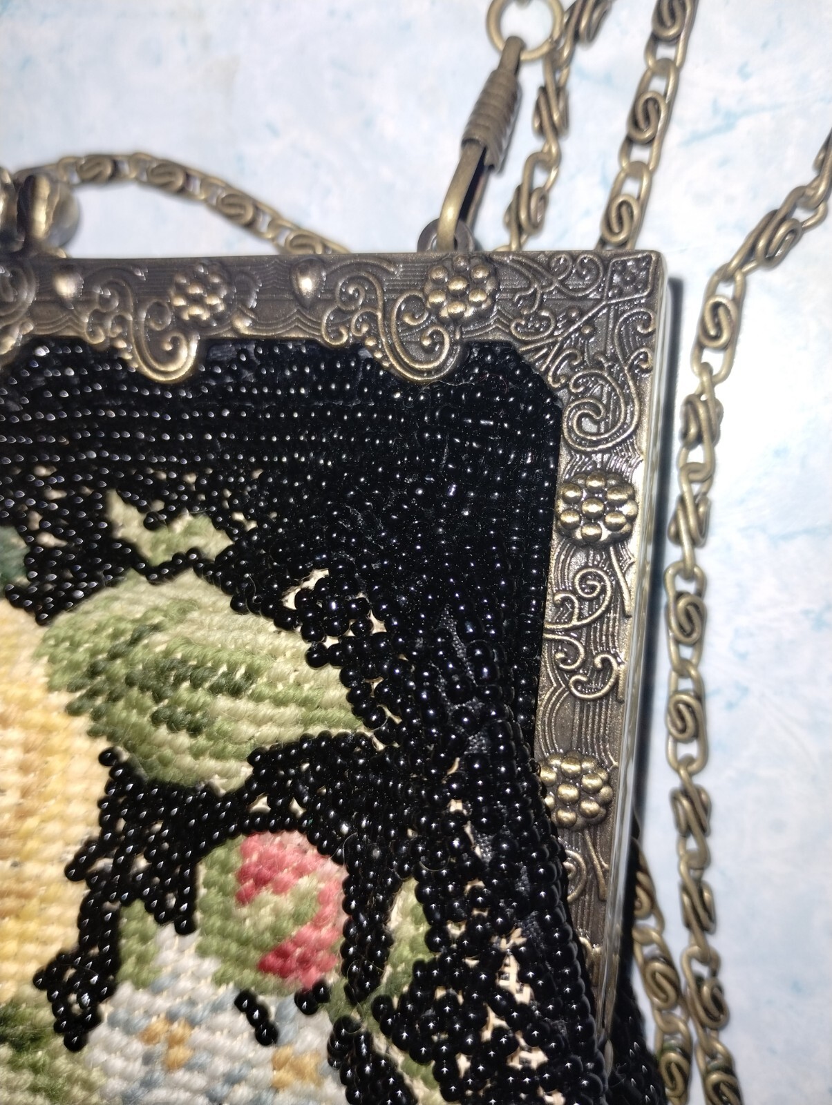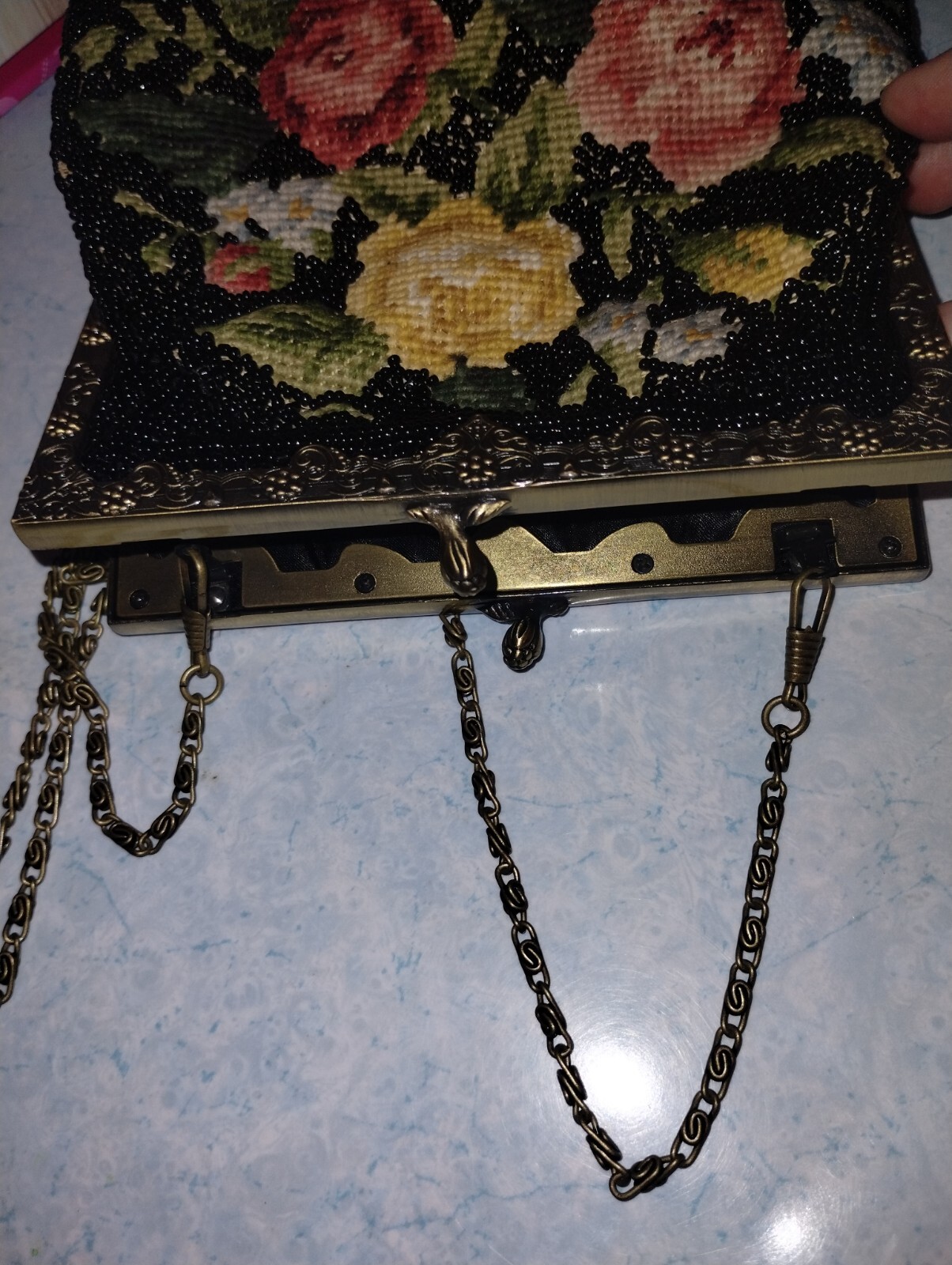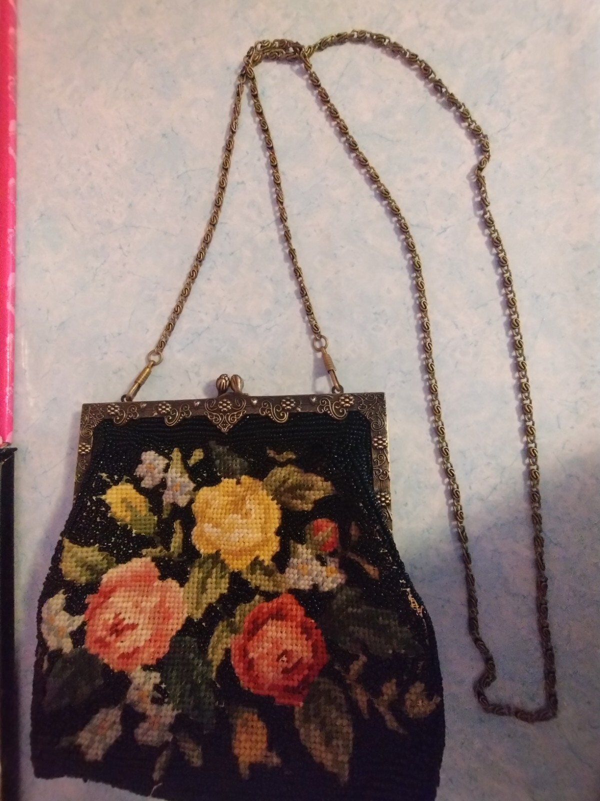 как выглядит Vintage needlepoint tapestry purse handbag black with flowers фото