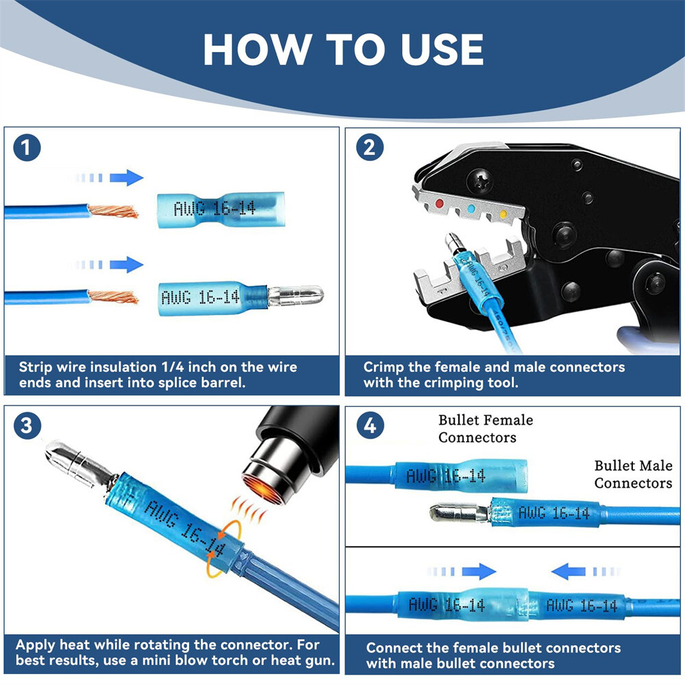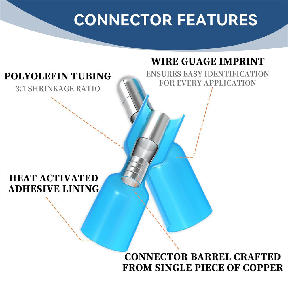 100PCS Blue Waterproof Heat Shrink Bullet Male Female Crimp Terminals Connectors