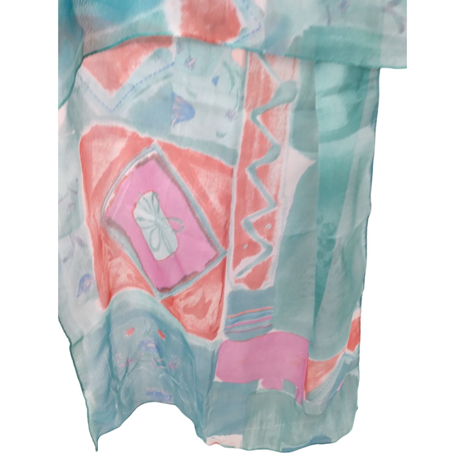 Vtg. Italy sheer polyester pastel watercolor Geometric 58x15 rectangular scarf