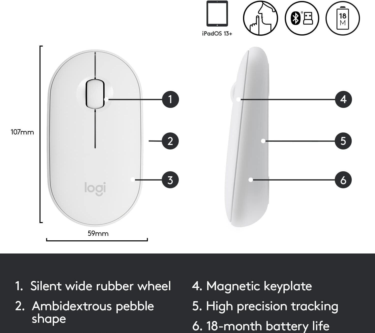 Logitech Slim Wireless Bluetooth Mouse Silent Click for iPad macOS - White