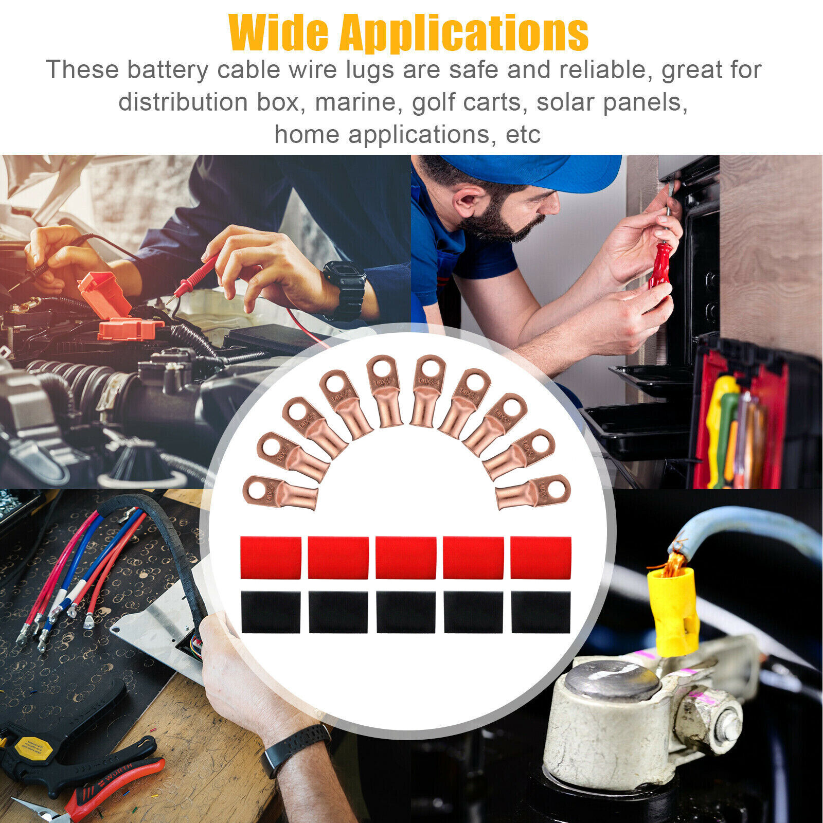 Package Content: 10 Copper Lugs + 10 Heat Shrink