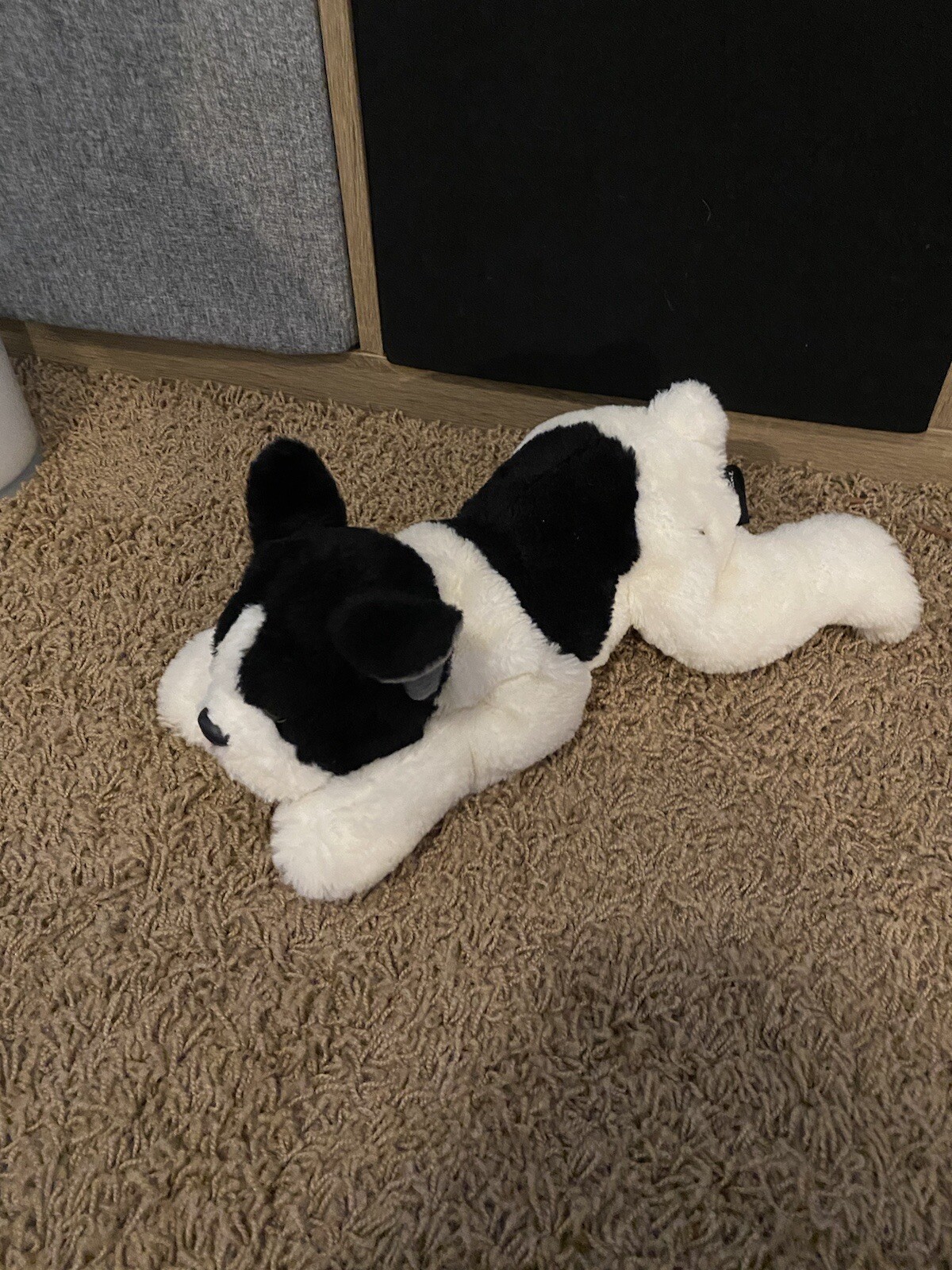 как выглядит FAO Schwarz Realistic French Bulldog Plush Puppy Boston Terrier Black White 14 фото