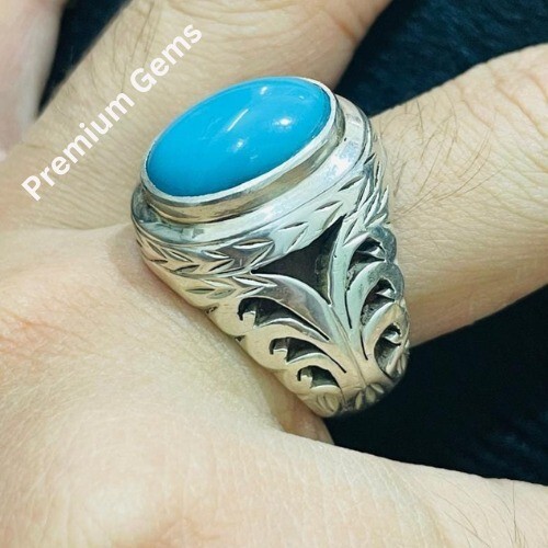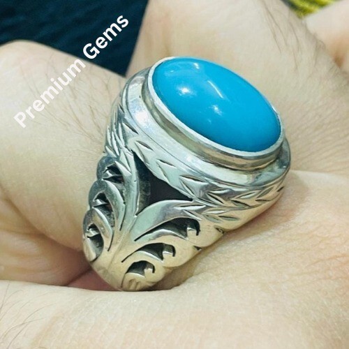как выглядит Clean Rare Turquoise Ring Nishapuri Feroza Natural Feroza Ring Shia Rings фото