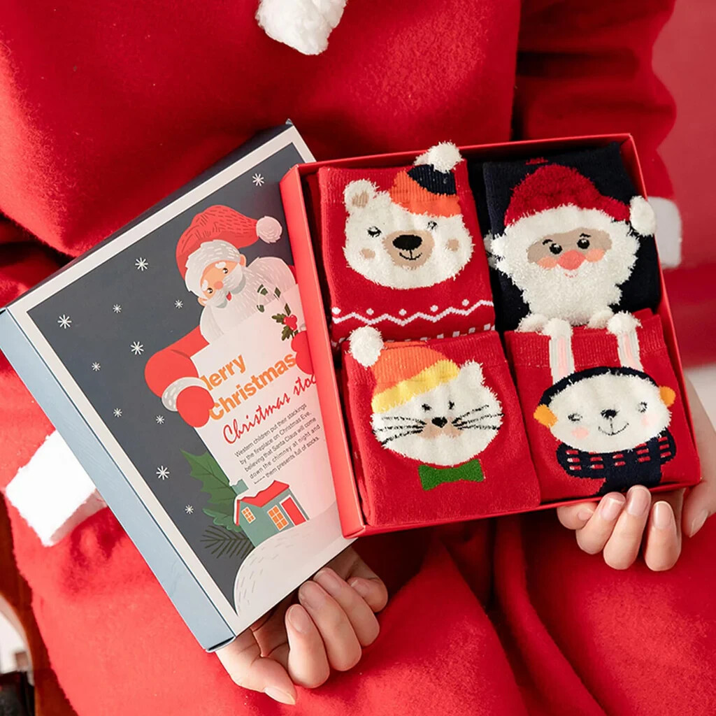 Qpout 4 Pairs Christmas Socks Novelty Xmas Casual Ankle Socks Box-Packed