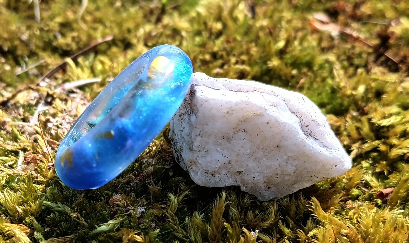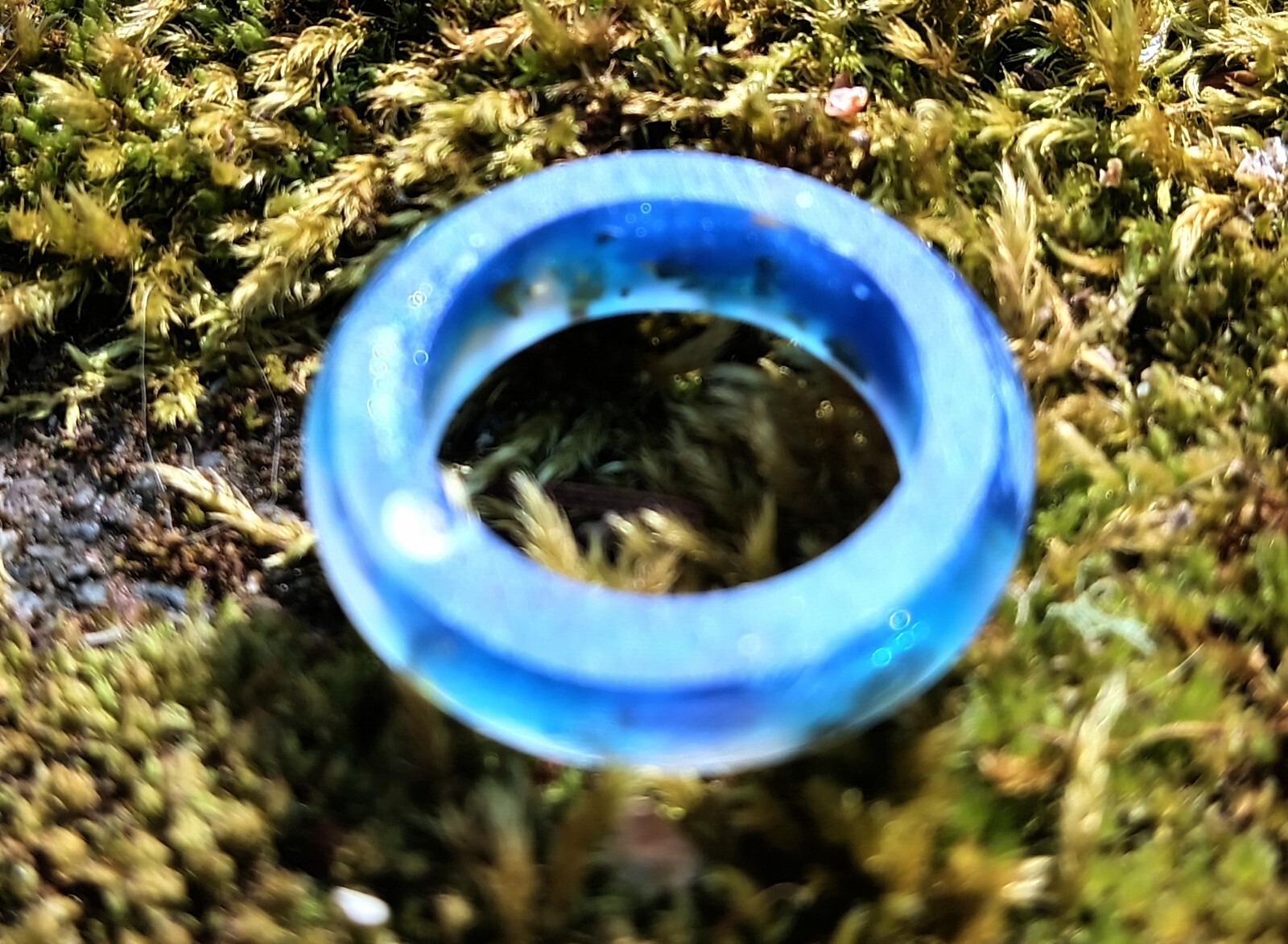 Handmade Unisex Blue Handmade Resin Ring With Golden Flakes Size 7