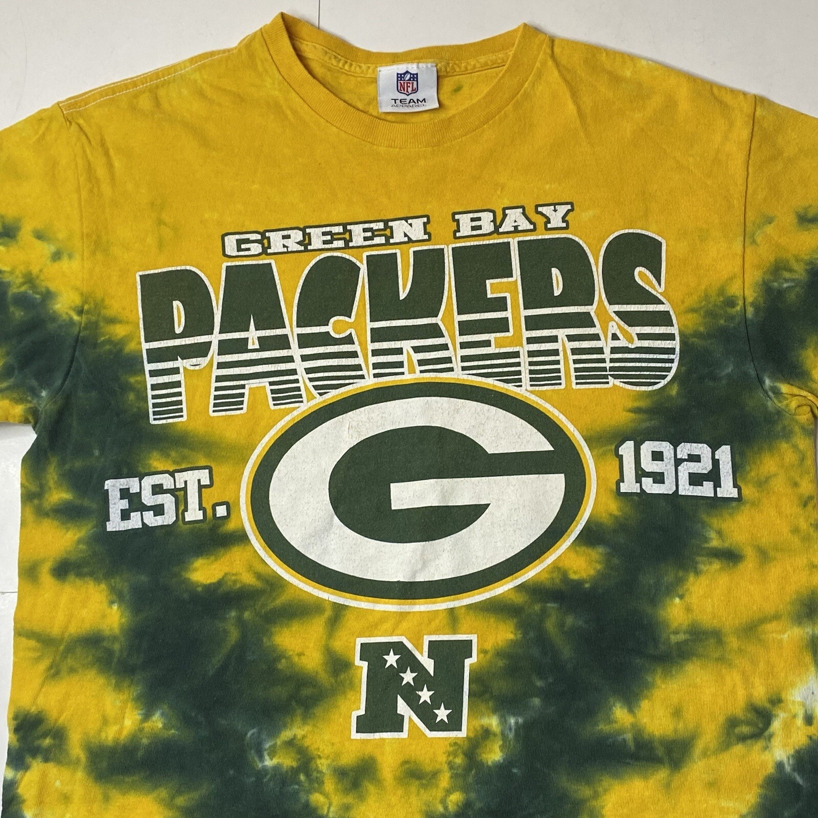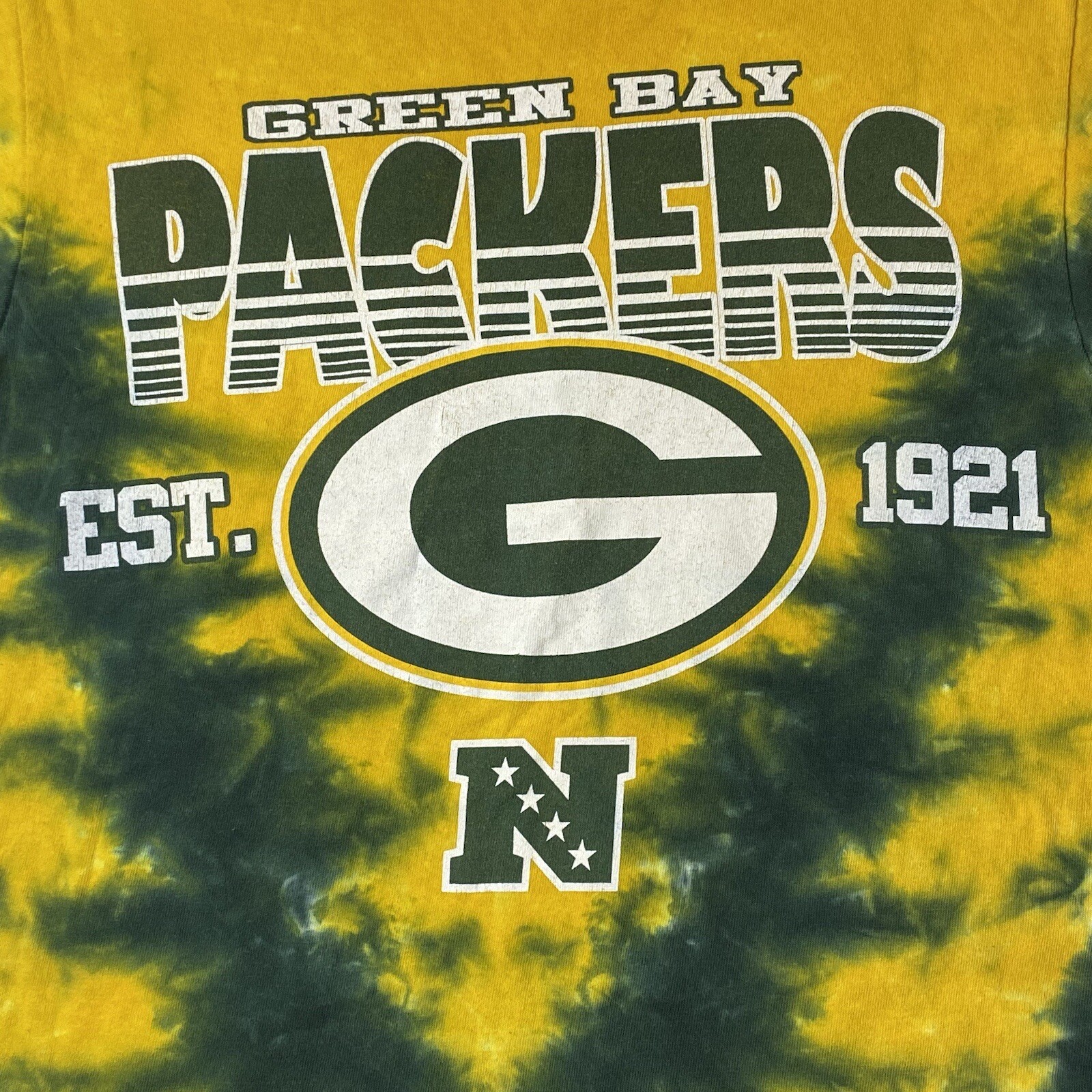 Green Bay Packers Shirt Adult Medium Vintage Tie Dye NFL Team Apparel Green Y2K