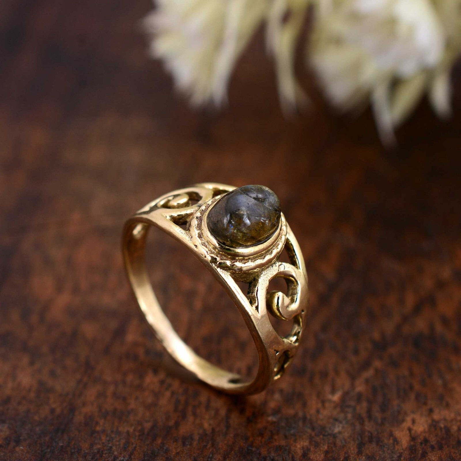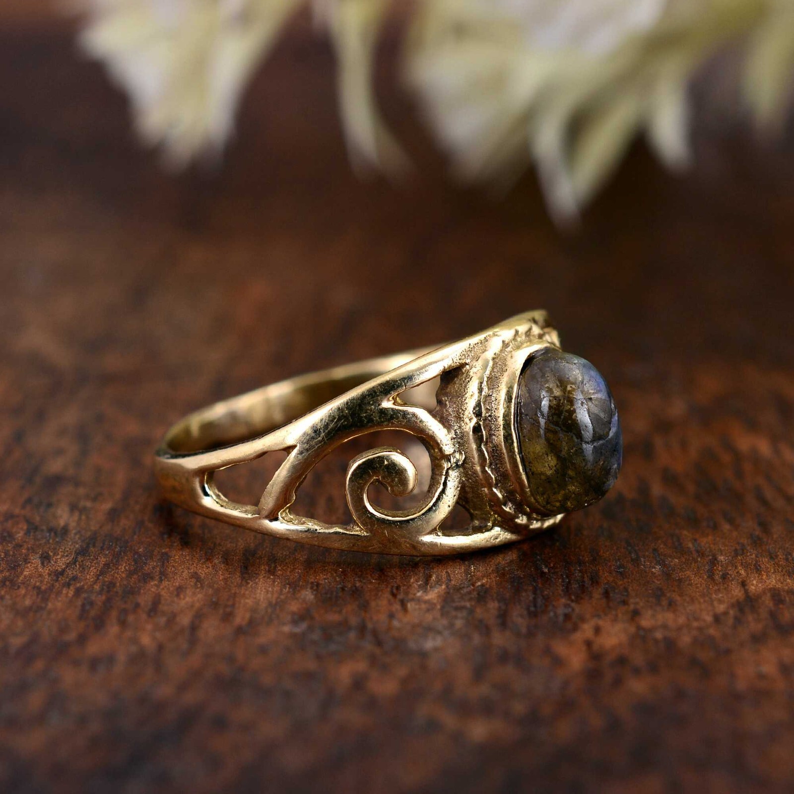 925 Sterling Silver Ladies Labradorite Oval Cabochon Gemstone Ring,gift for Wife