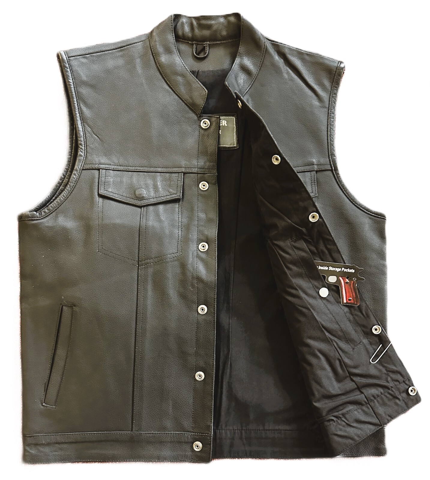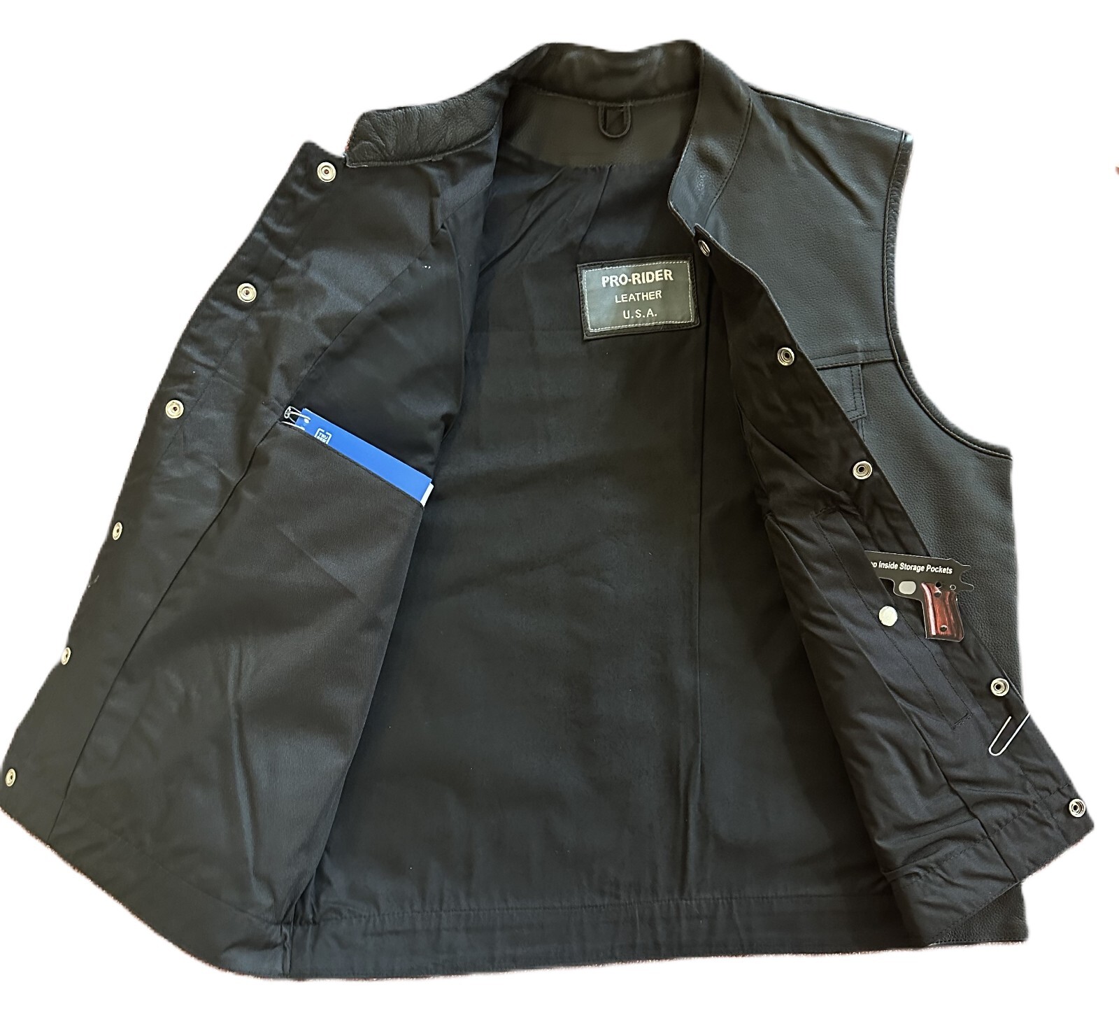 Men's Outlaw Leather Motorcycles Club Vest concealed carry pockets, single panel