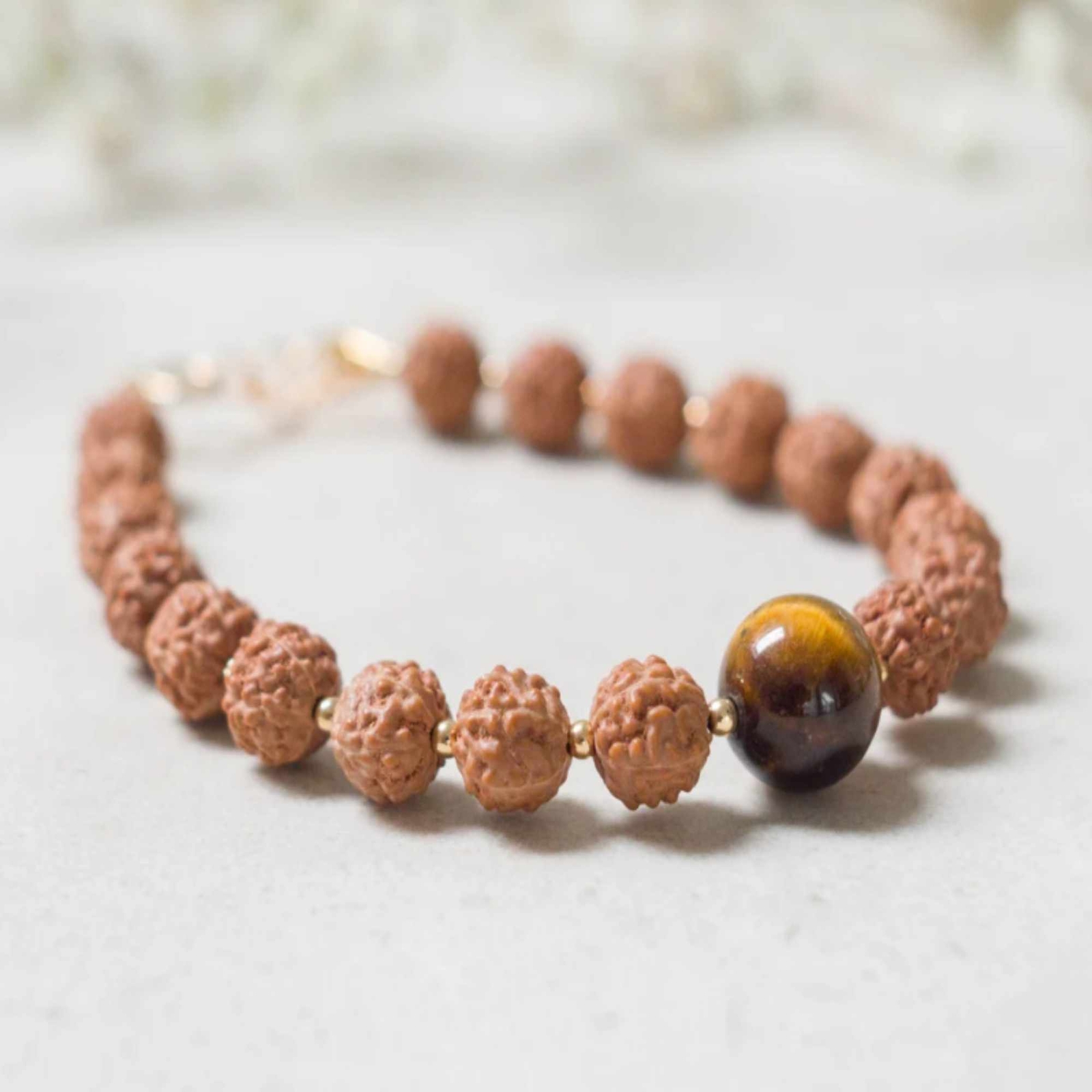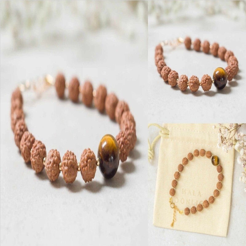 Natural 6mm brown Rudraksha 10mm Tiger's eye bracelet Yoga Energy cuff men mala