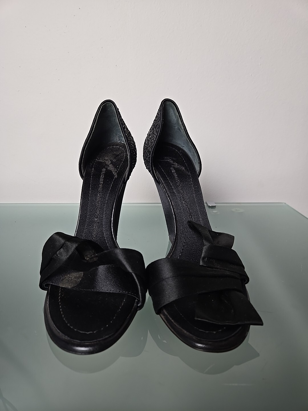 как выглядит Giuseppe Zanotti Vicini Sz 7.5 Leather Mule Heels Sequins Bow 450 Retail Vtg фото