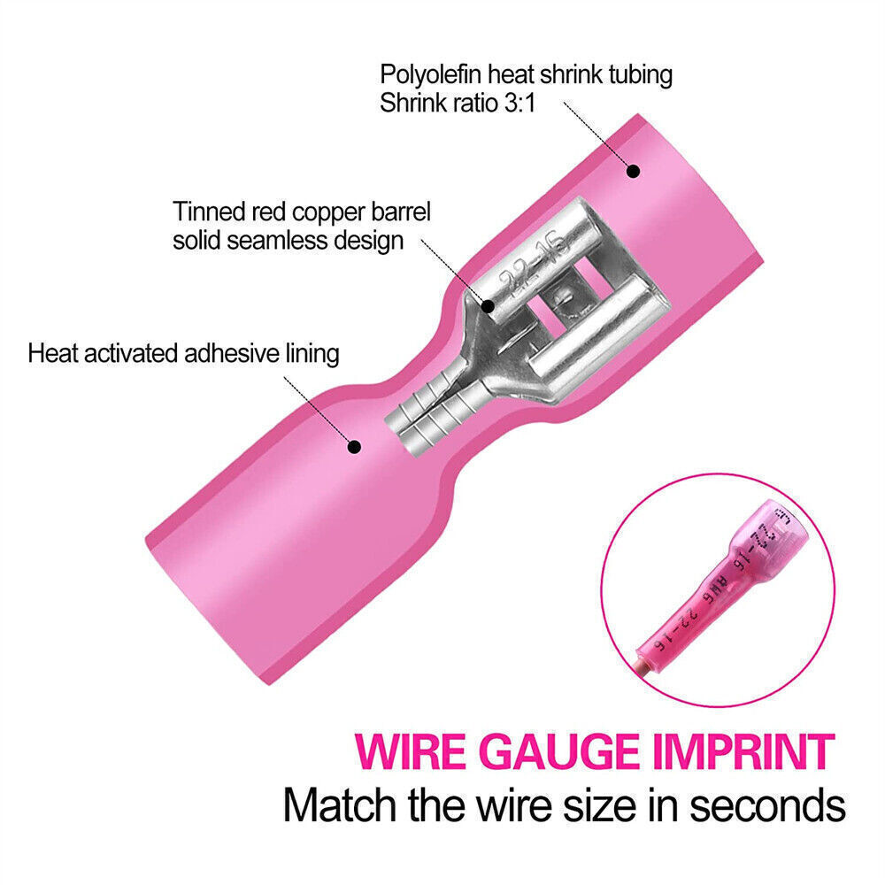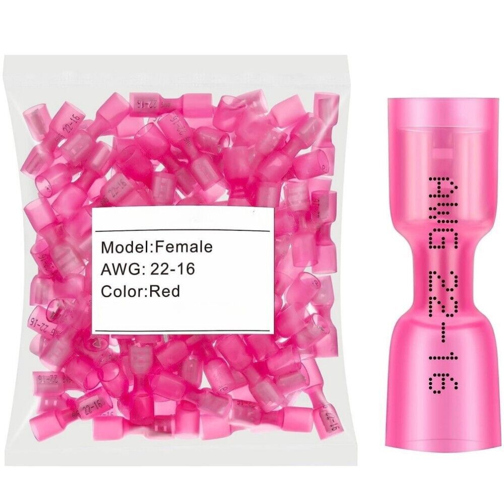50pcs 22-16AWG Gauge Heat Shrink Red Spade Female Wire Connector Crimp Terminals