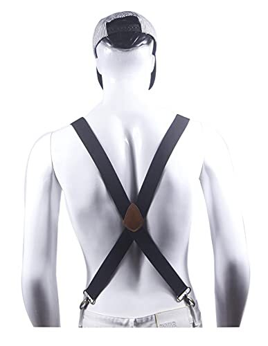 Men s Heavy Duty Belt Loops X Back 1.4 Inch Suspenders with 4 Snap Hooks Black