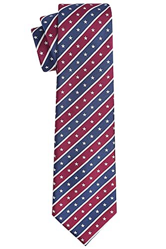 100 Silk Patriotic Tie USA Necktie 4th Of July Stars N X-Long Red Blue