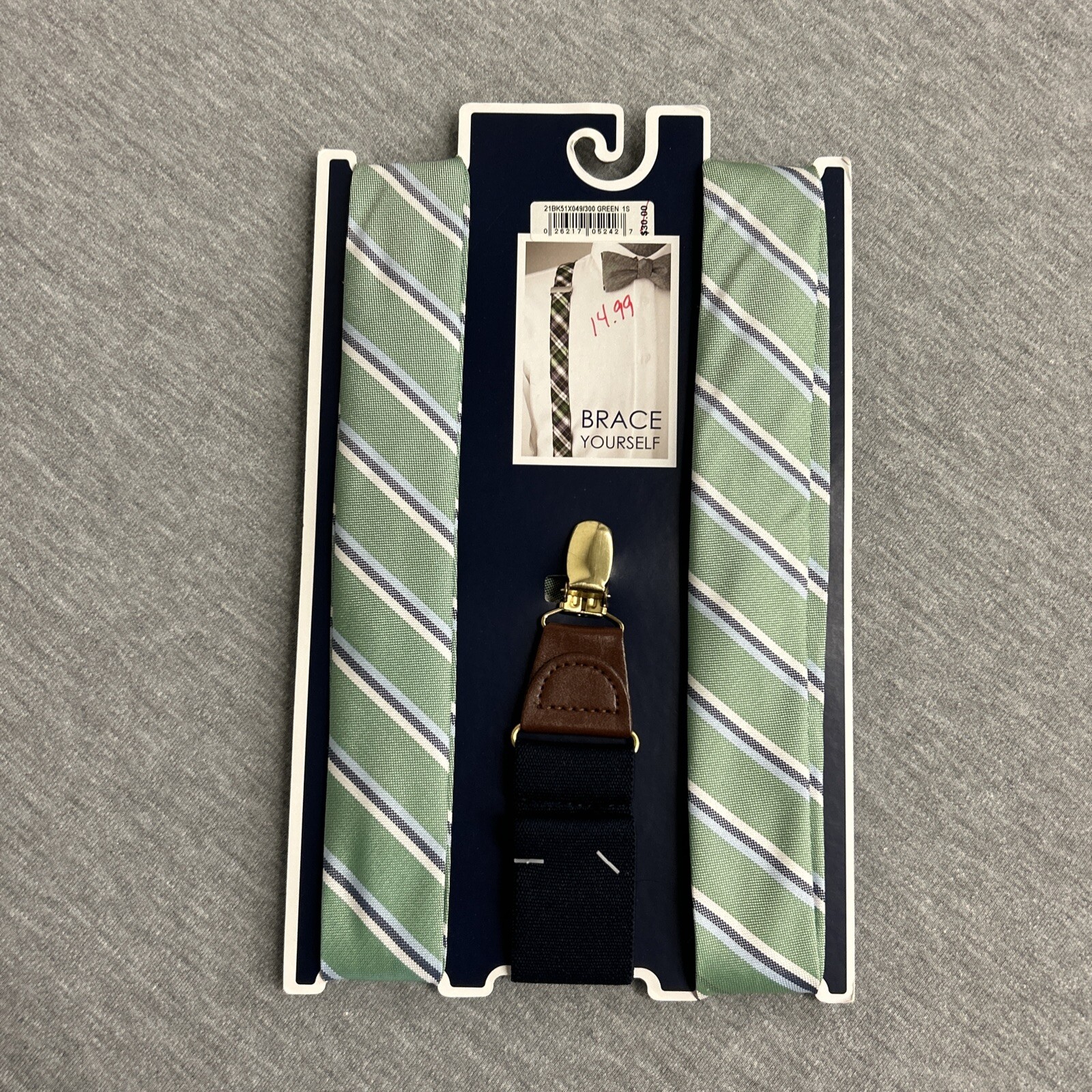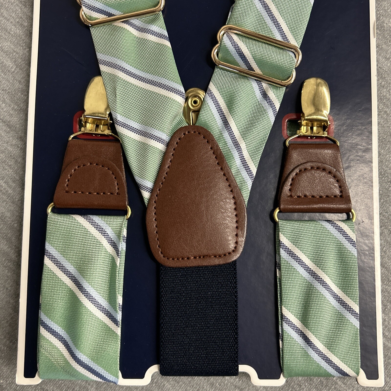 Saddlebred Suspenders Men's One Size Clip Closure Green Striped
