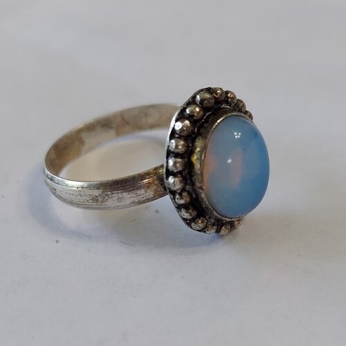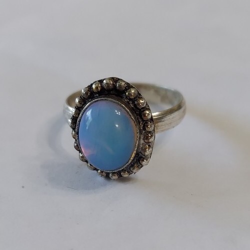 A41 - Handmade Artisan Silver And Oval Opalite Ring Size 9