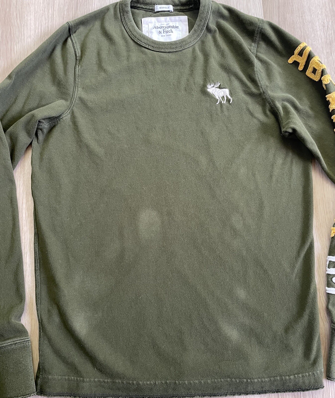 как выглядит Abercrombie Fitch VTG 92 Long Sleeve Shirt Muscle Fit MEDIUM MOOSE LOGO фото