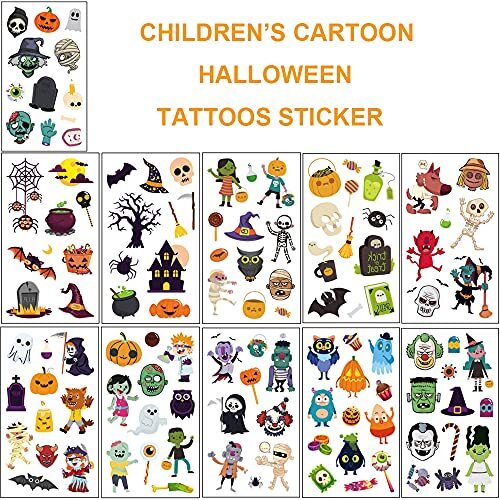 Halloween Temporary Tattoos for Kids, 120 PCS Halloween Day Cartoon Halloween