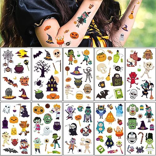 как выглядит Halloween Temporary Tattoos for Kids, 120 PCS Halloween Day Cartoon Halloween фото