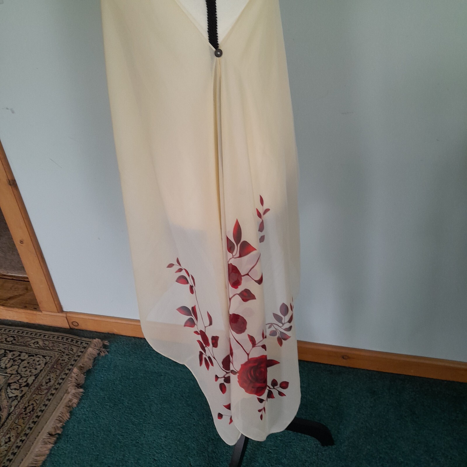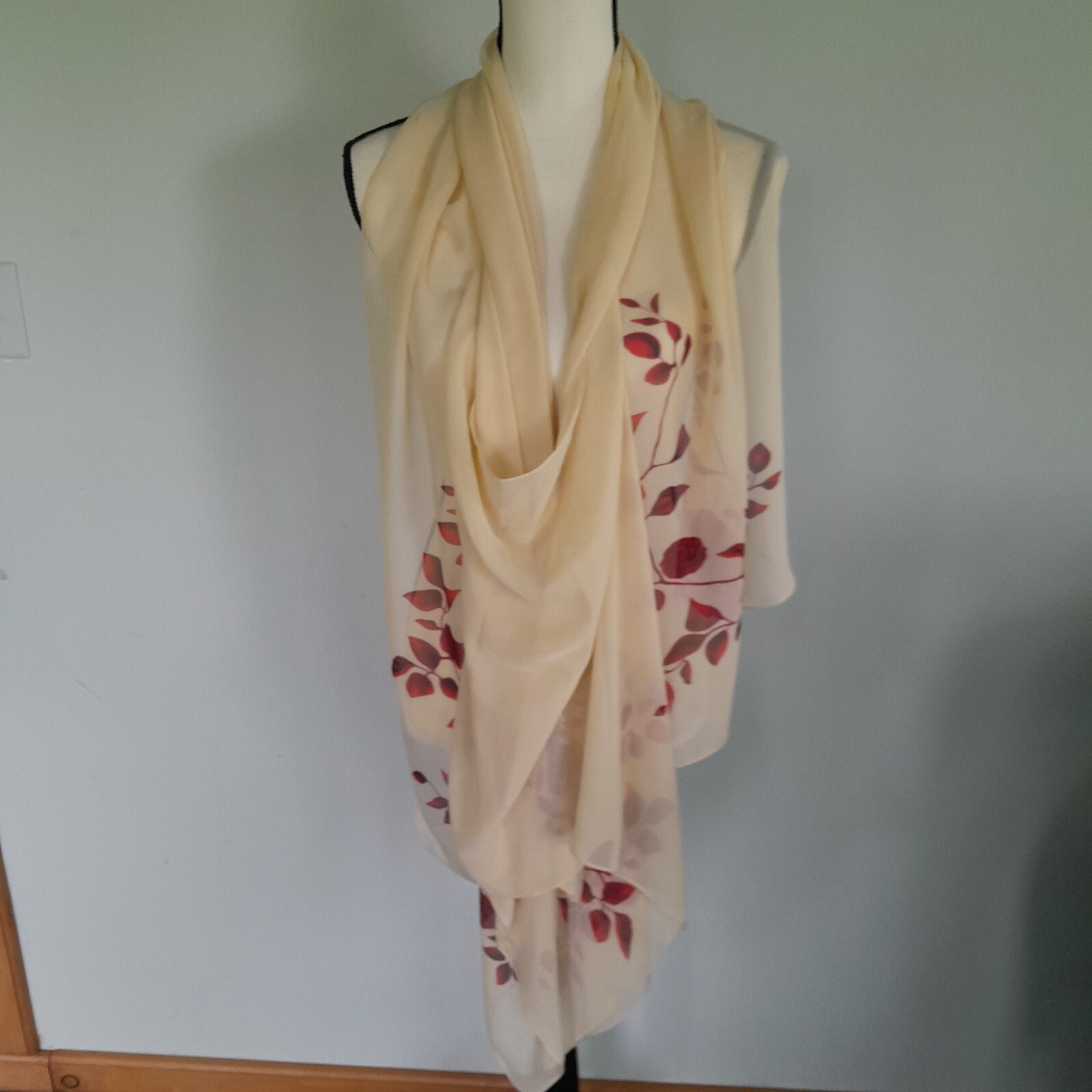 Sheer Rose Print Scarf New Red