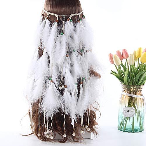 Feather Headband White Fake Pearl Hippie Indian Boho Hair Bands Tassel