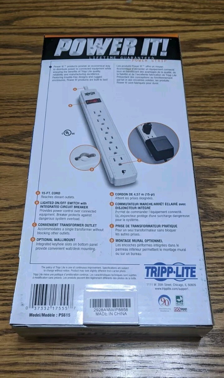 Tripp Lite PS615 Power Strip 120V 5-15R 6 Outlet - 15 ft. Cord NEW WHITE