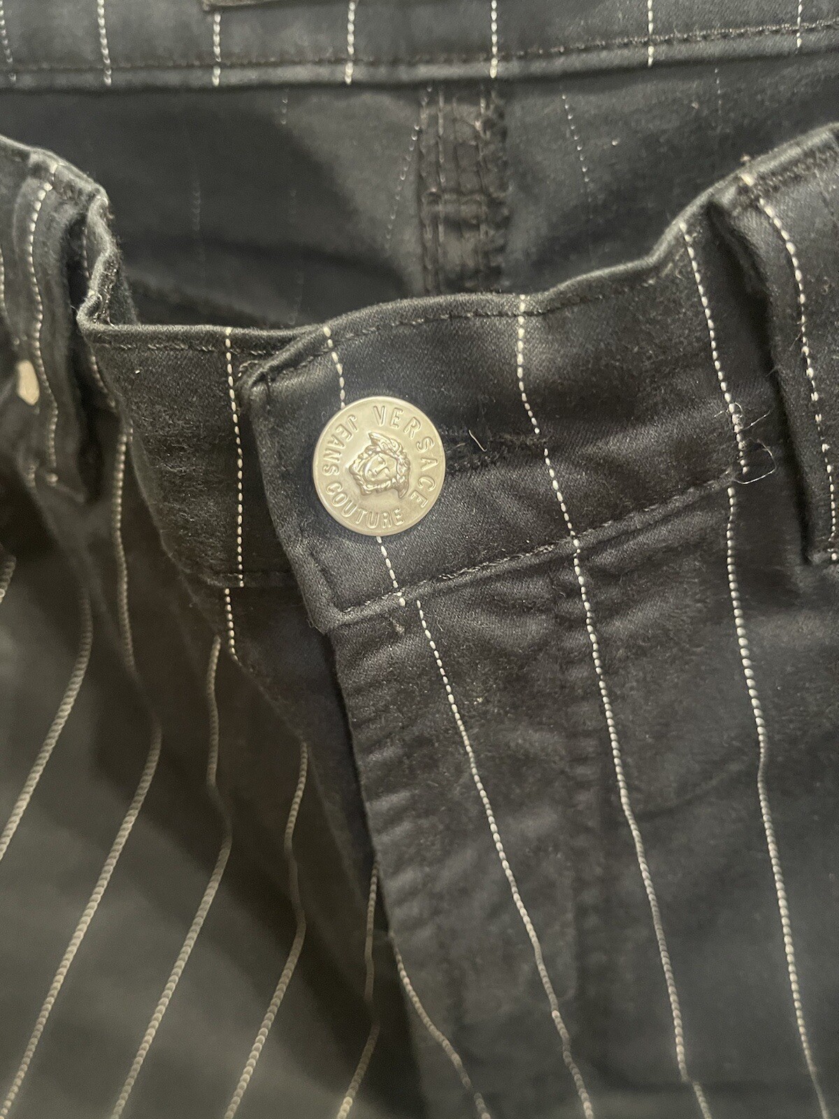 как выглядит VERSACE JEANS COUTURE VINTAGE STRIPED PANTS MEDUSA LOGO SIZE 31 фото