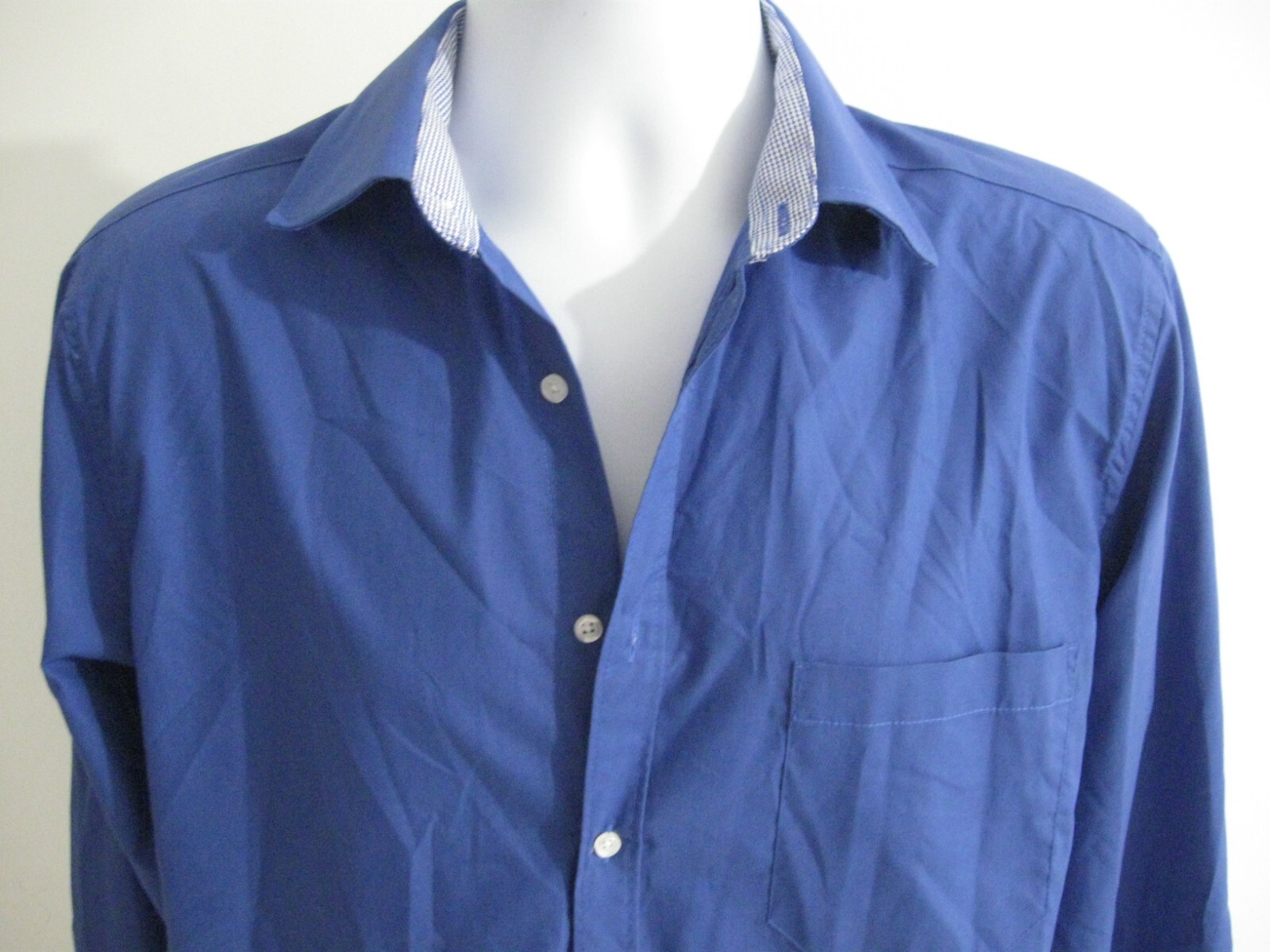 как выглядит Society of Threads Mens Blue Dress Shirt Size 15 38 Regular Fit Easy Care фото