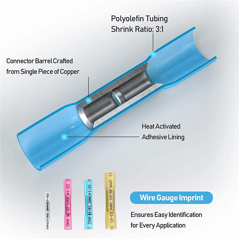 200PCS Waterproof Heat Shrink But Connectors Electrical Wire Marine Butt Splice