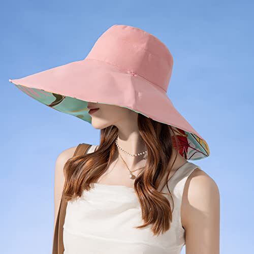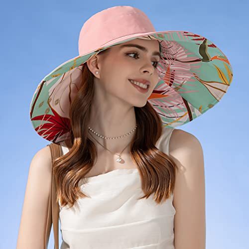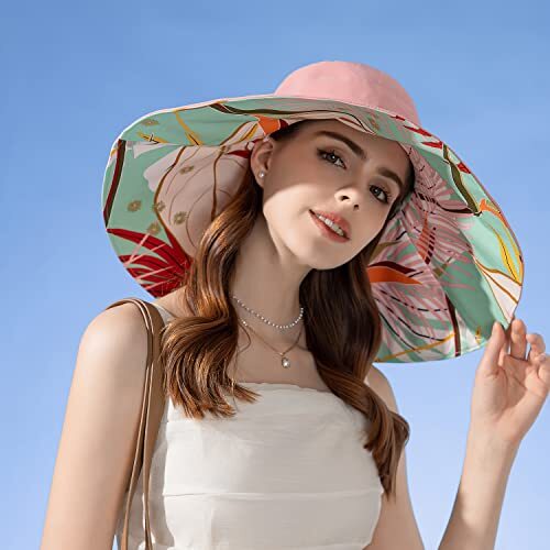 как выглядит Women Summer Sun Hat Wide Brim Wired Edge Floral Beach One Size Bg8240-pink фото