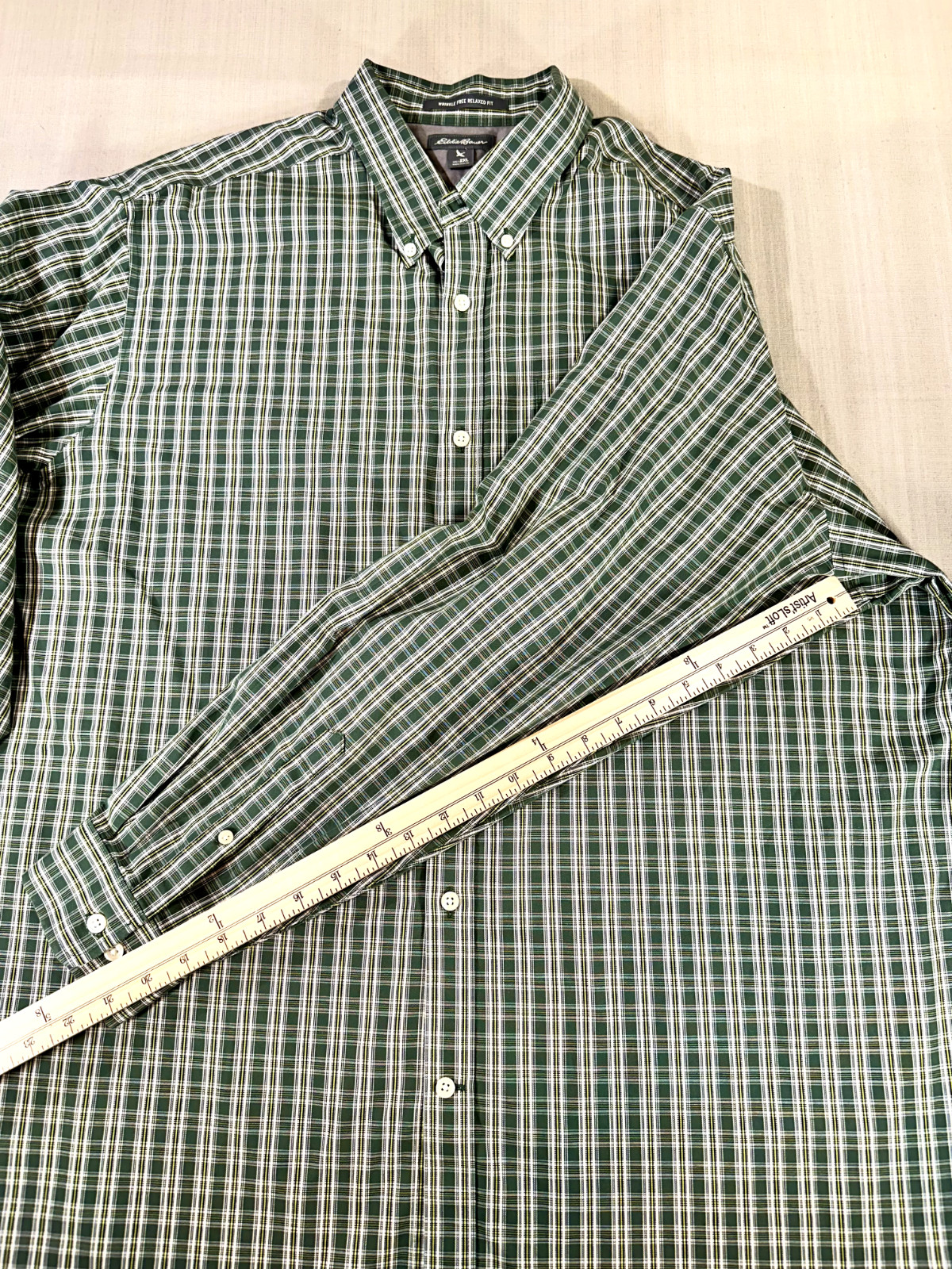 Eddie Bauer Shirt Mens 2XL Button Up Green Plaid Long Sleeve 3326