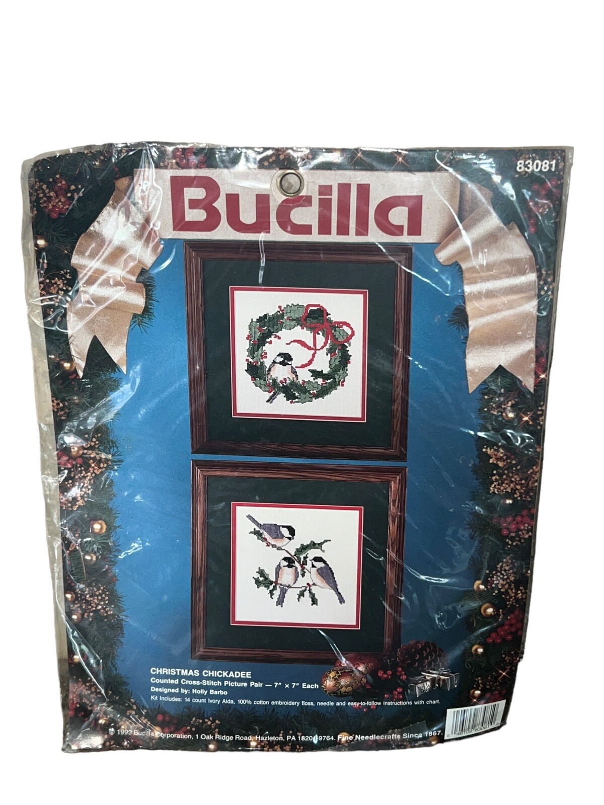 VTG Bucilla Counted Cross Stitch Kit Chickadee Pair Christmas Birds 83081