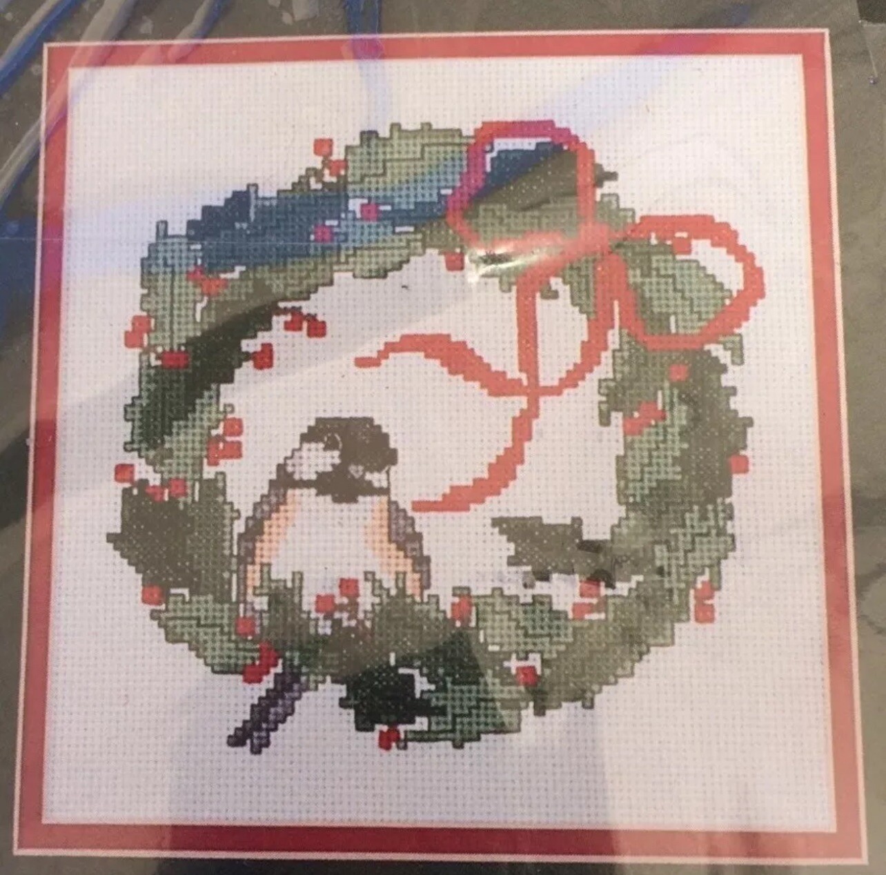 как выглядит VTG Bucilla Counted Cross Stitch Kit Chickadee Pair Christmas Birds 83081 фото