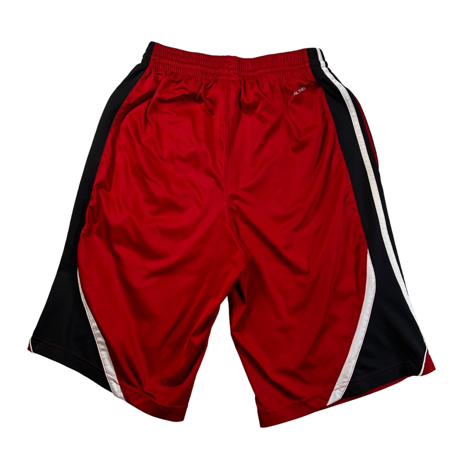 ADIDAS Shorts Boys Embroidered Polyester Elastic Waist Drawstring Red Black Sm