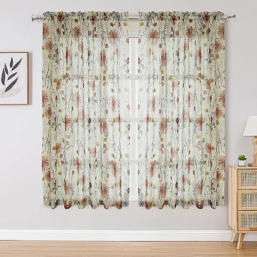 Crushed Sheer Curtains 63 Inches Length 2 Panels Set, 42 W x 63L Multi Color