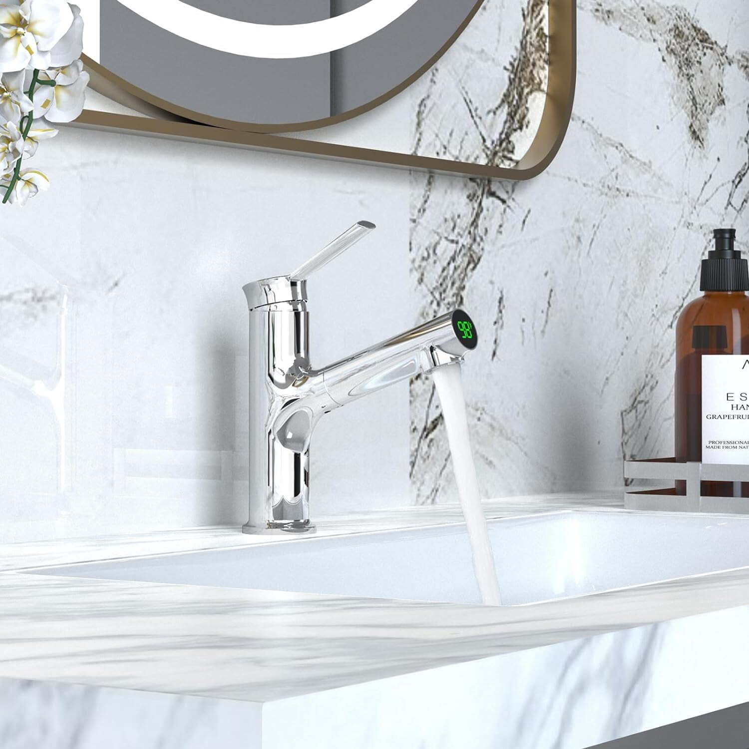 Bathroom Basin Sink Faucet for 1 Hole Single Handle Lavatory Vanity Silver