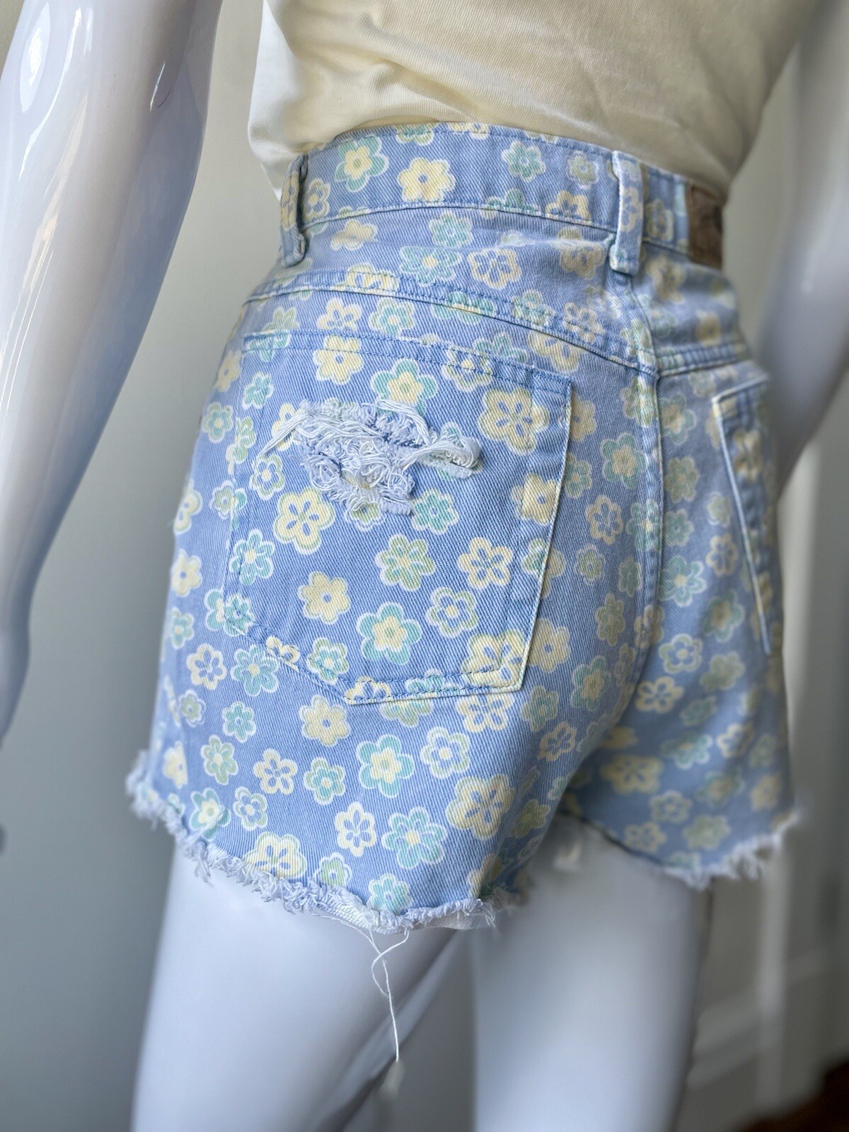 Vintage 28 W Denim Shorts Floral Blue