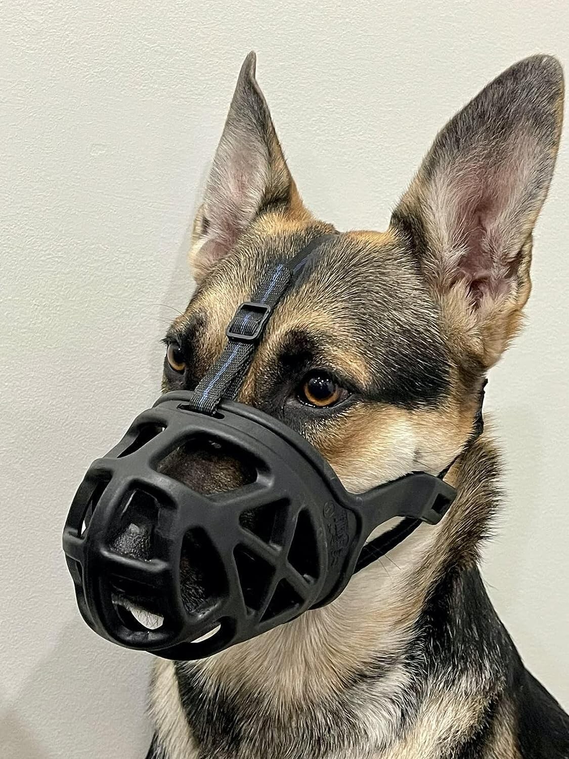 Dog Muzzle, Breathable Basket Muzzle - Black - Size Large