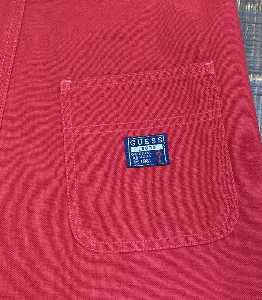 как выглядит Vintage 90 s Guess Girls Red Denim Shorts / Overalls Size L American Tradition фото