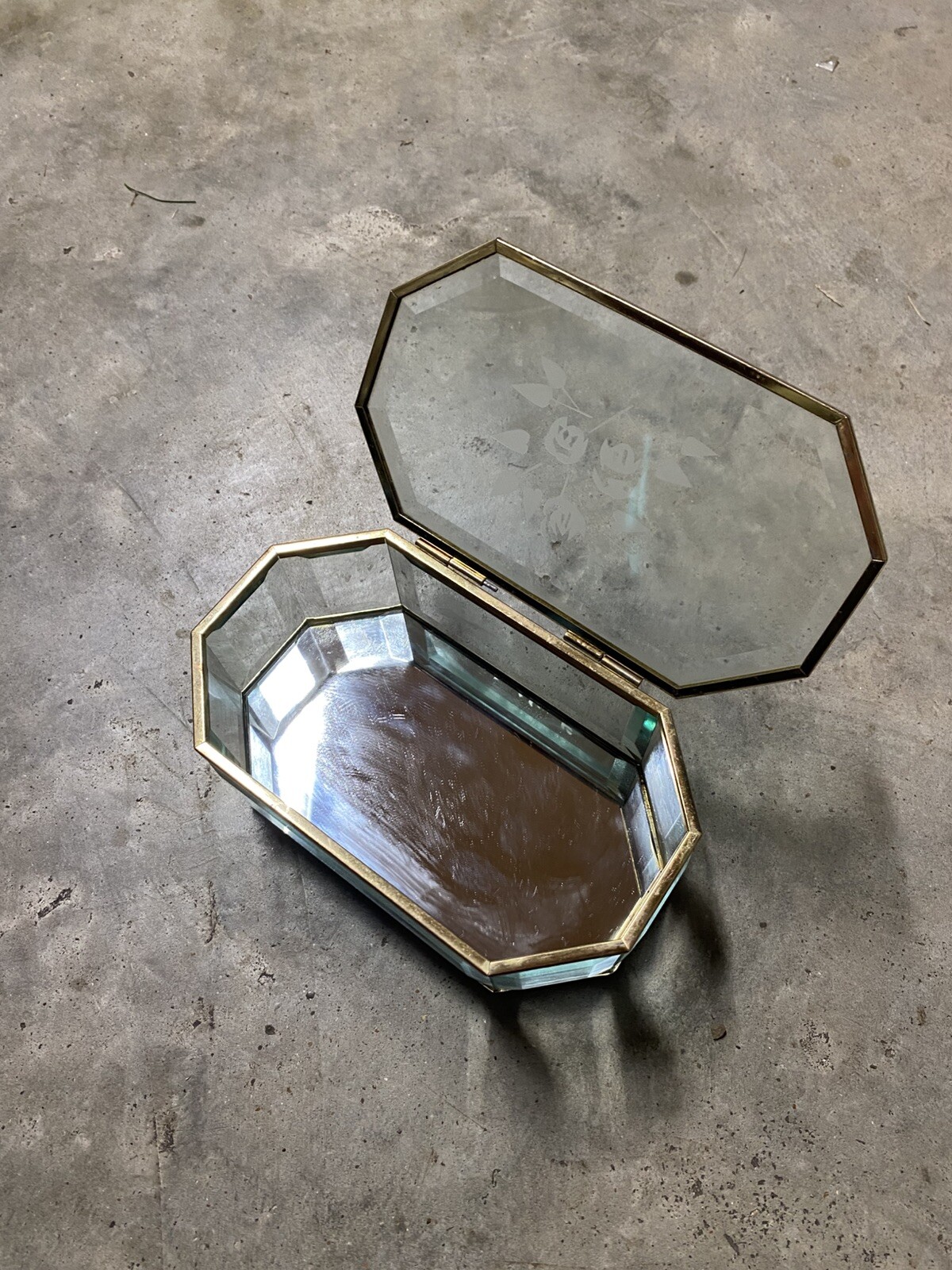 как выглядит Vintage Etched Beveled Glass Leaded Glass Jewelry Box - Floral Design фото